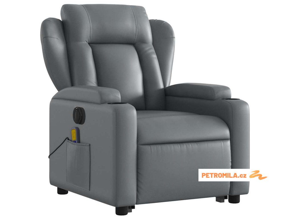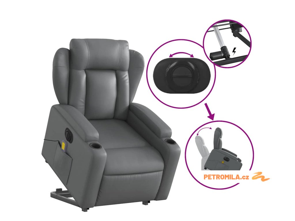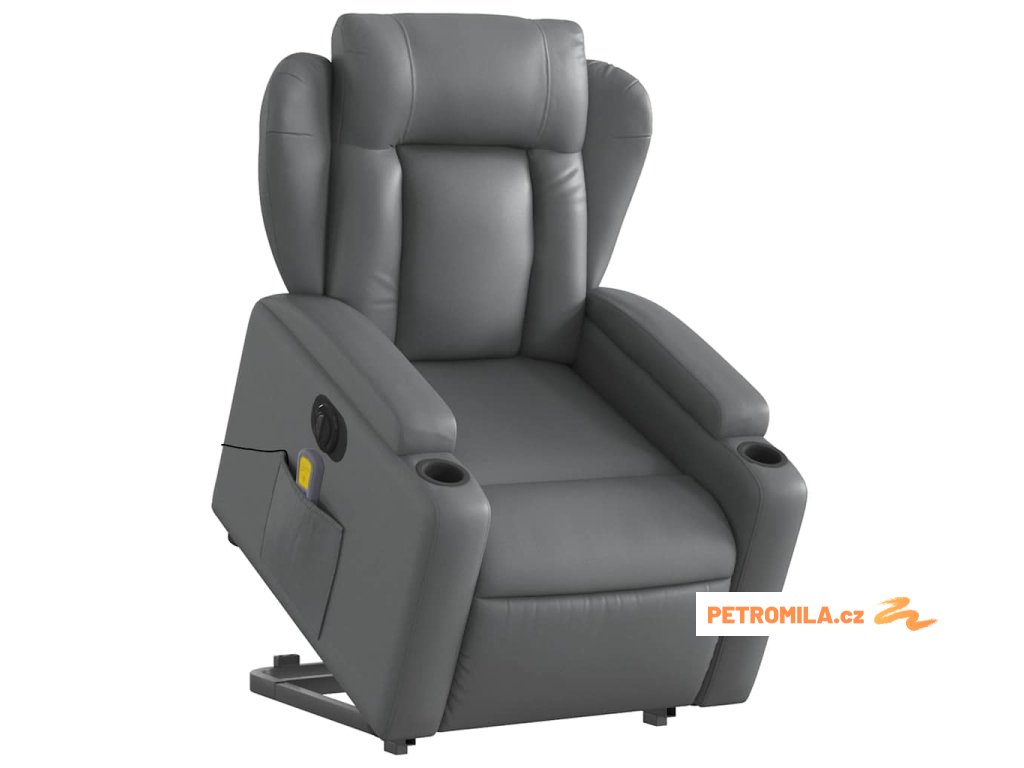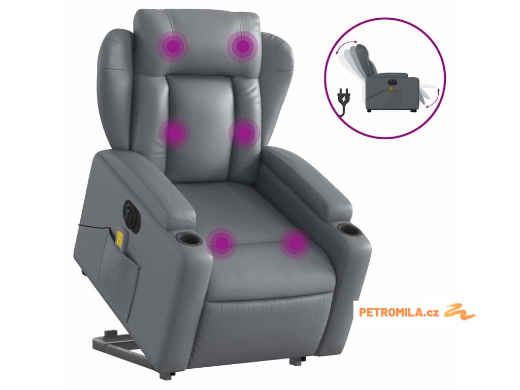 Elektrické zvedací masážní polohovací křeslo šedé umělá kůže