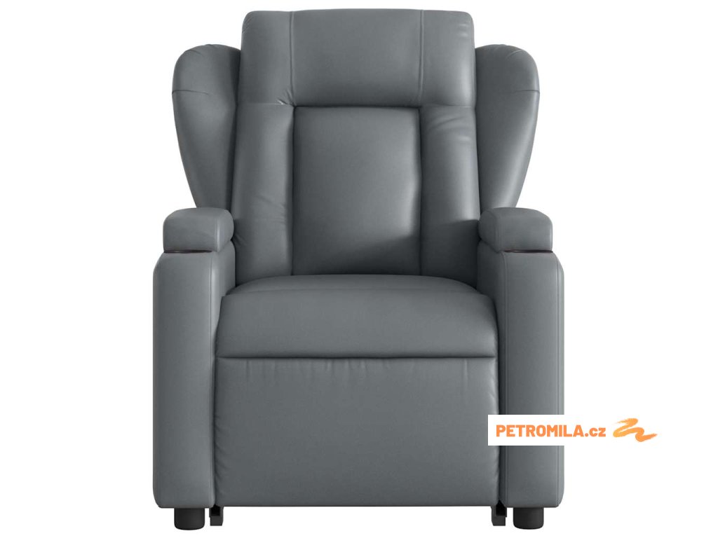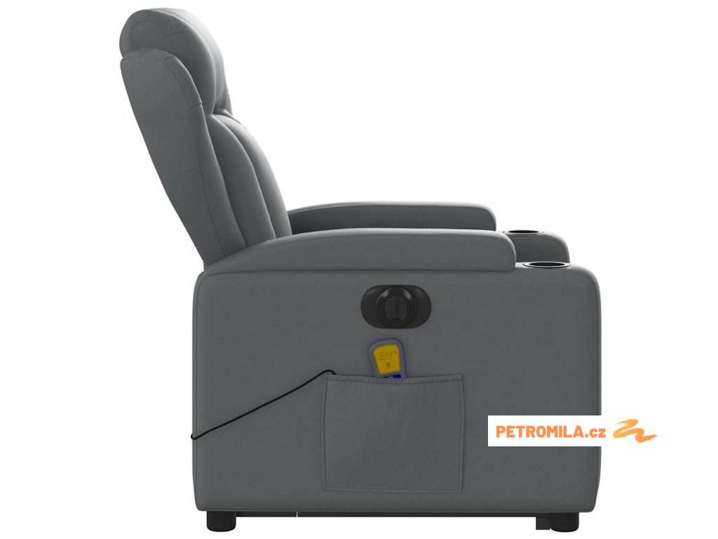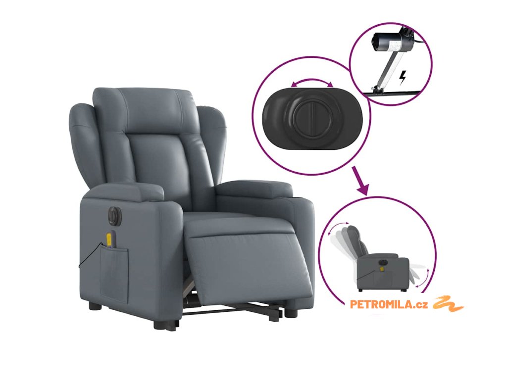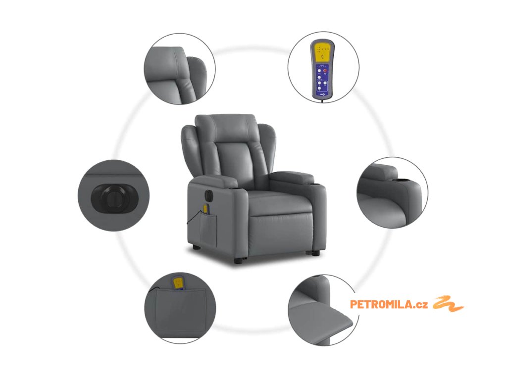 Elektrické zvedací masážní polohovací křeslo šedé umělá kůže