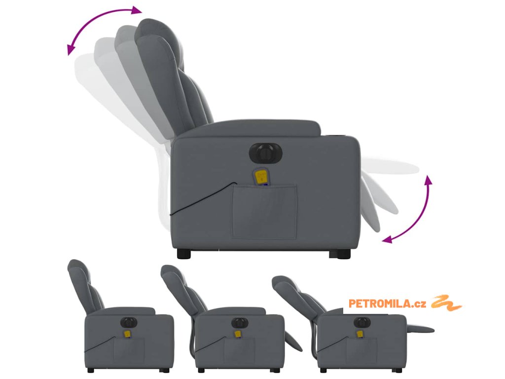 Elektrické zvedací masážní polohovací křeslo tmavě šedé textil