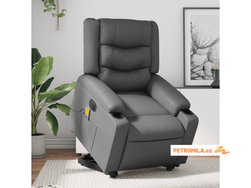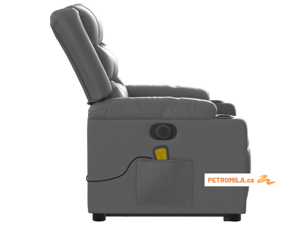 Elektrické zvedací masážní polohovací křeslo šedé umělá kůže
