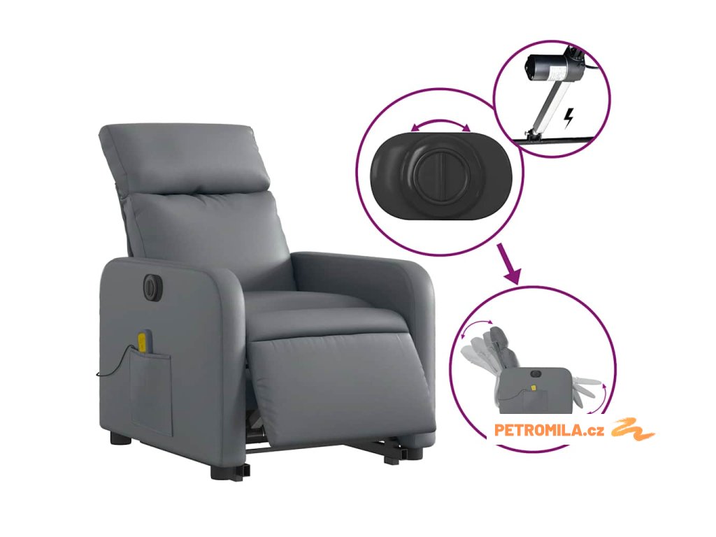 Elektrické zvedací masážní polohovací křeslo šedé umělá kůže