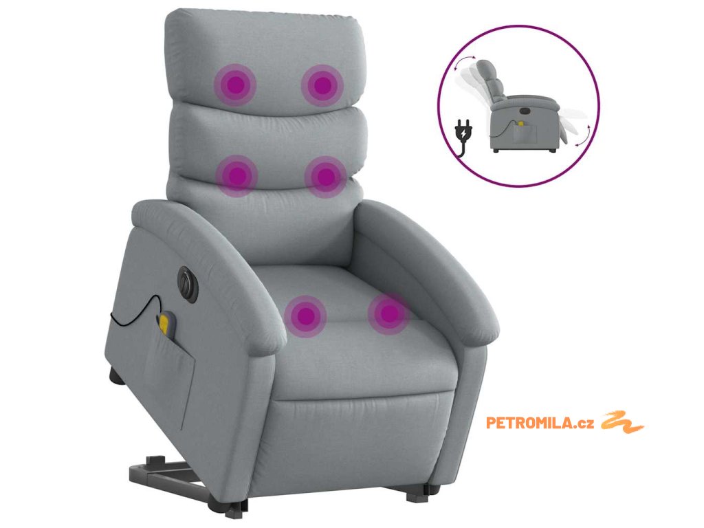 Elektrické zvedací masážní polohovací křeslo světle šedé textil