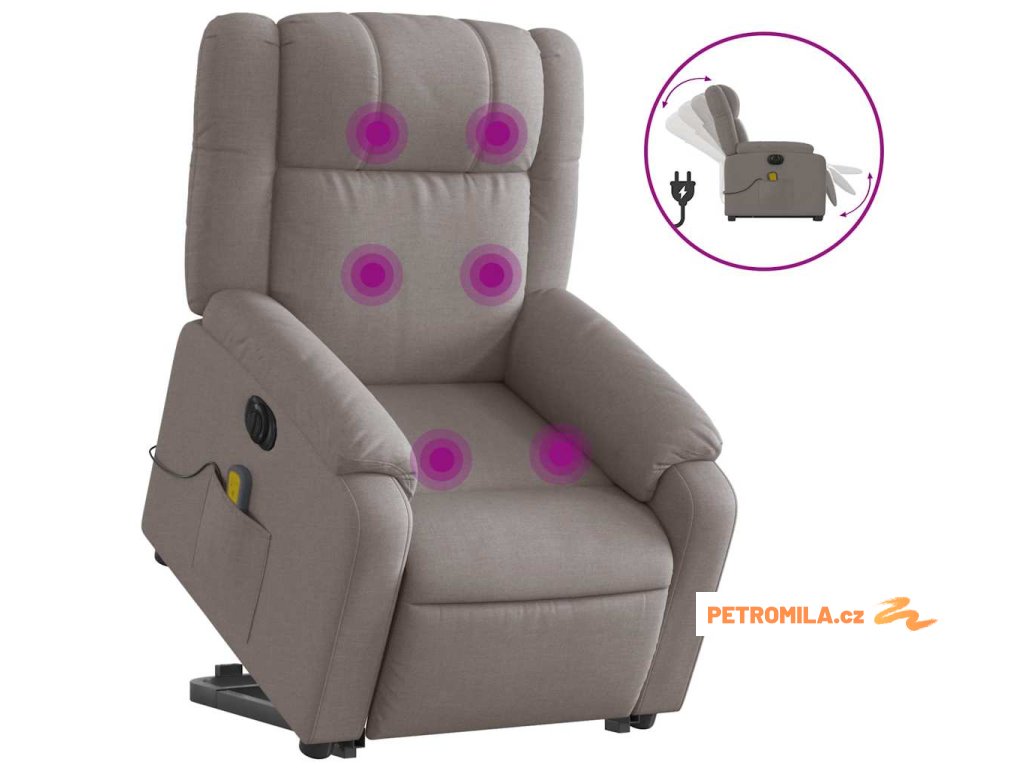 Elektrické zvedací masážní polohovací křeslo taupe textil