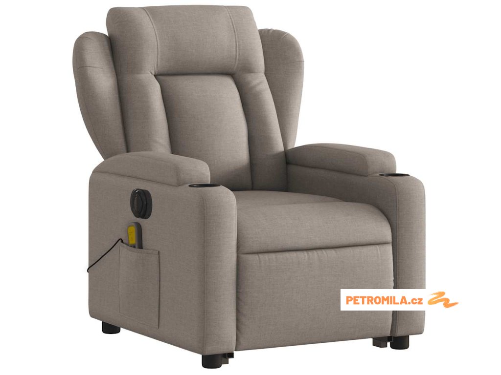 Elektrické zvedací masážní polohovací křeslo taupe textil