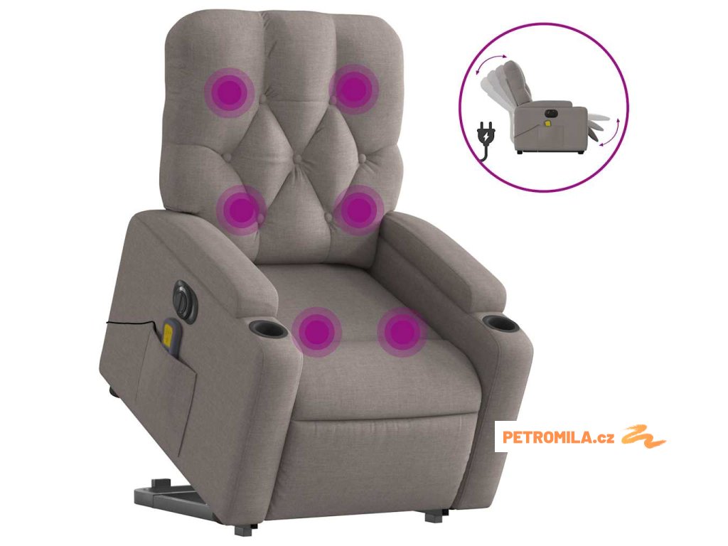 Elektrické zvedací masážní polohovací křeslo taupe textil