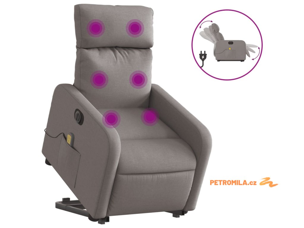 Elektrické zvedací masážní polohovací křeslo taupe textil