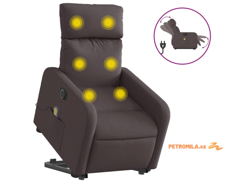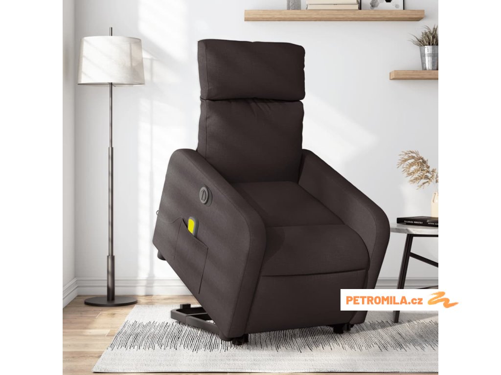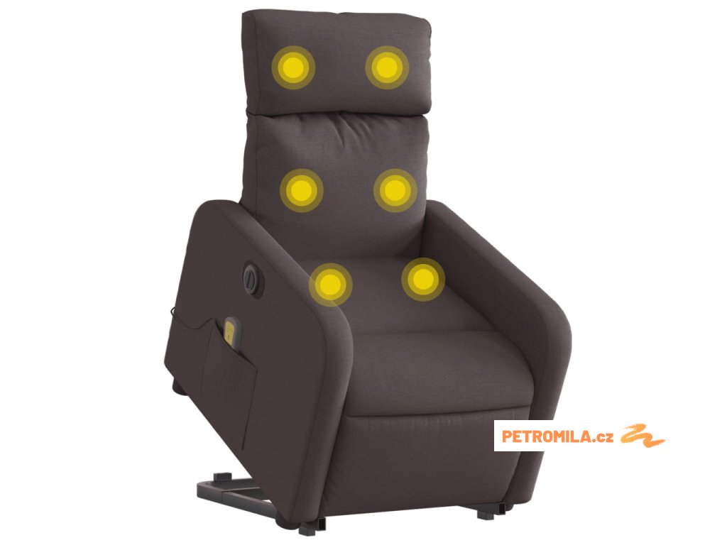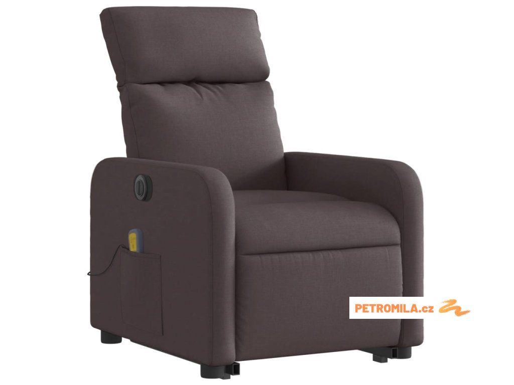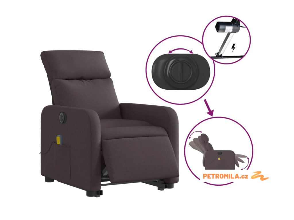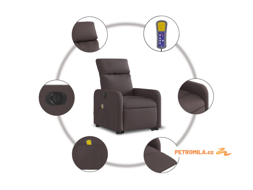 Elektrické zvedací masážní polohovací křeslo tmavě hnědé textil