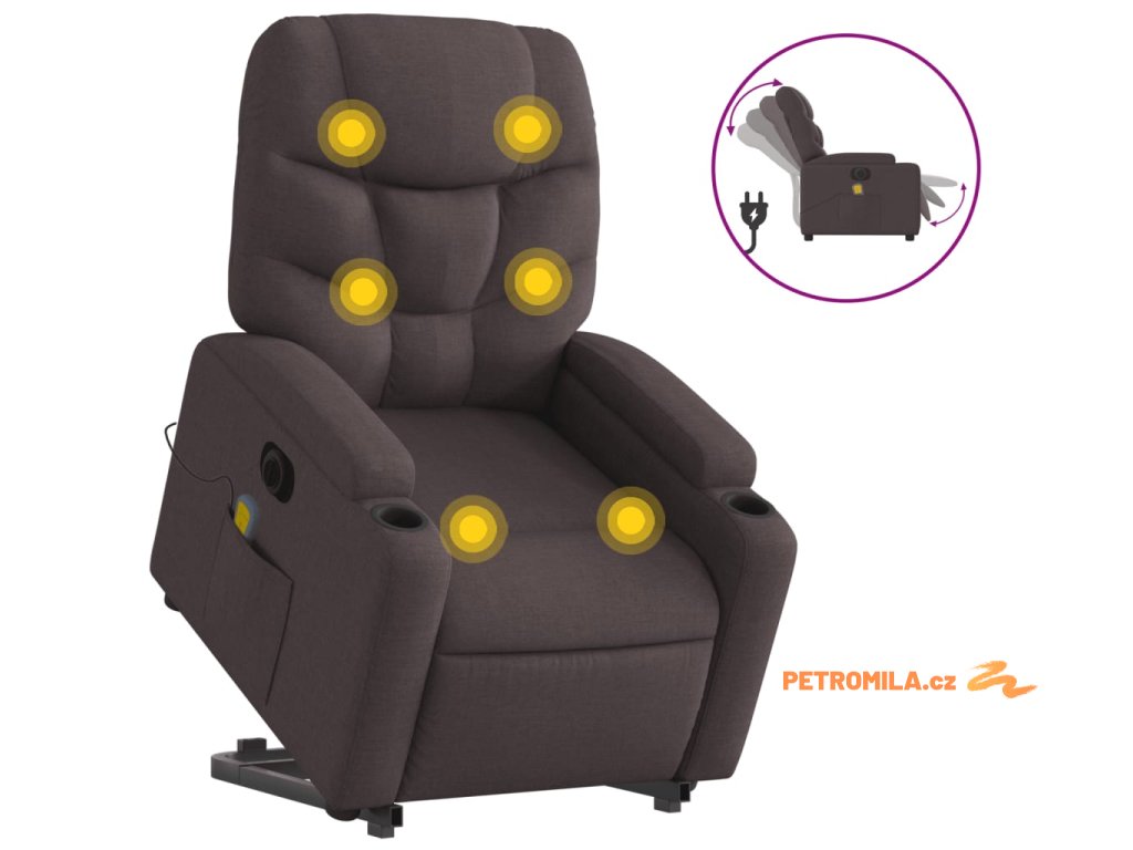 Elektrické zvedací masážní polohovací křeslo tmavě hnědé textil