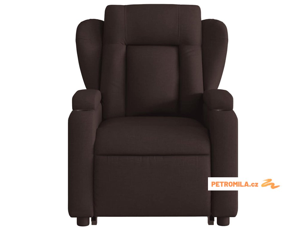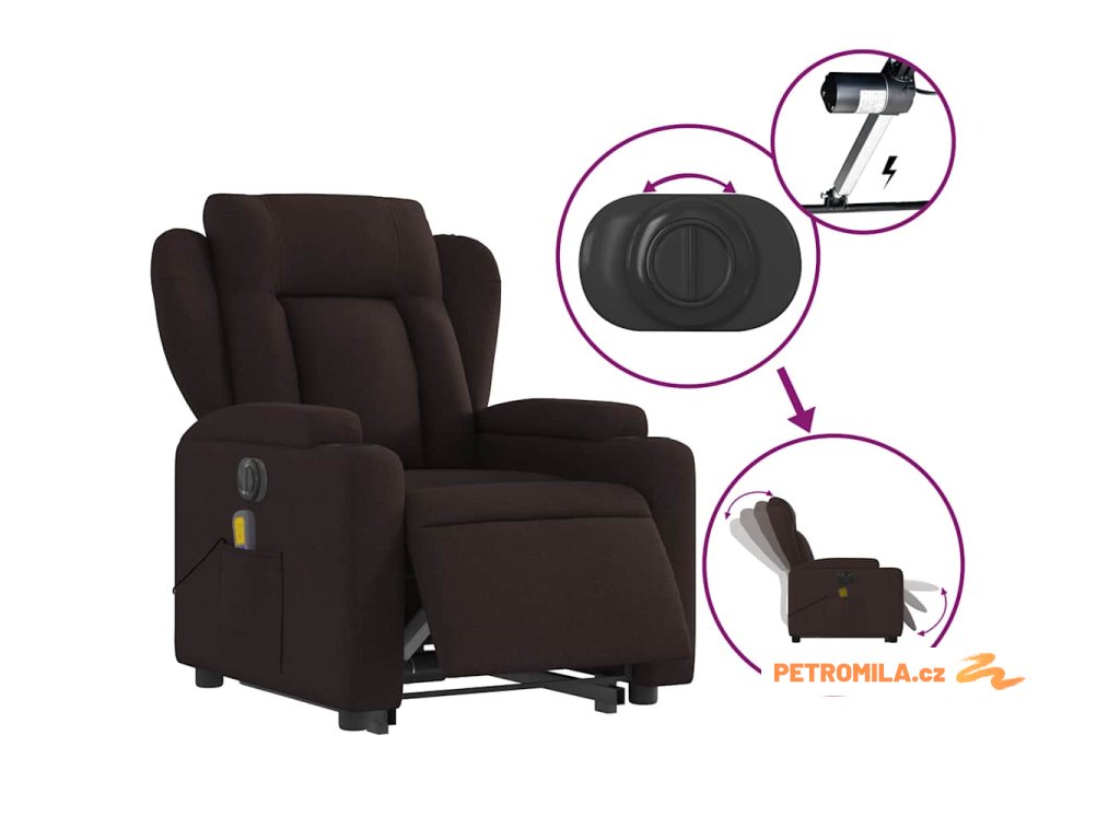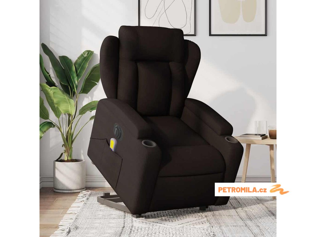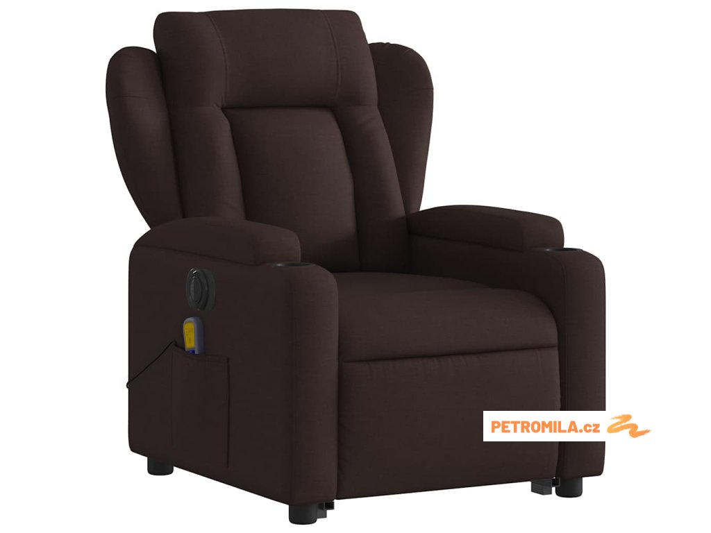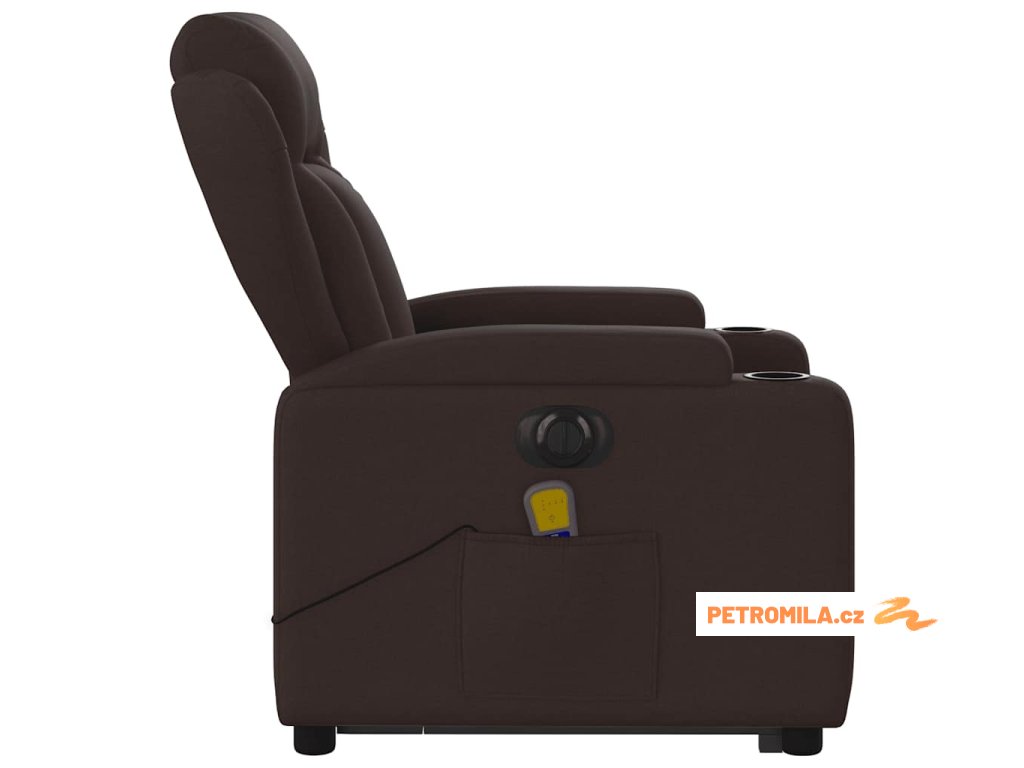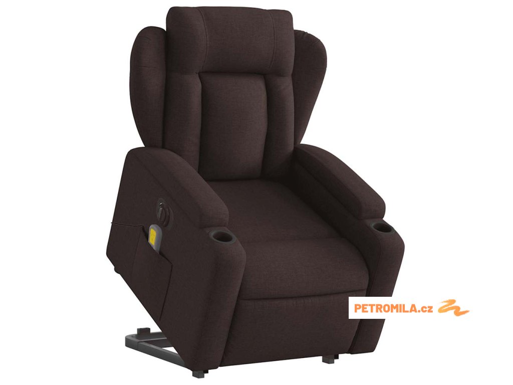 Elektrické zvedací masážní polohovací křeslo tmavě hnědé textil