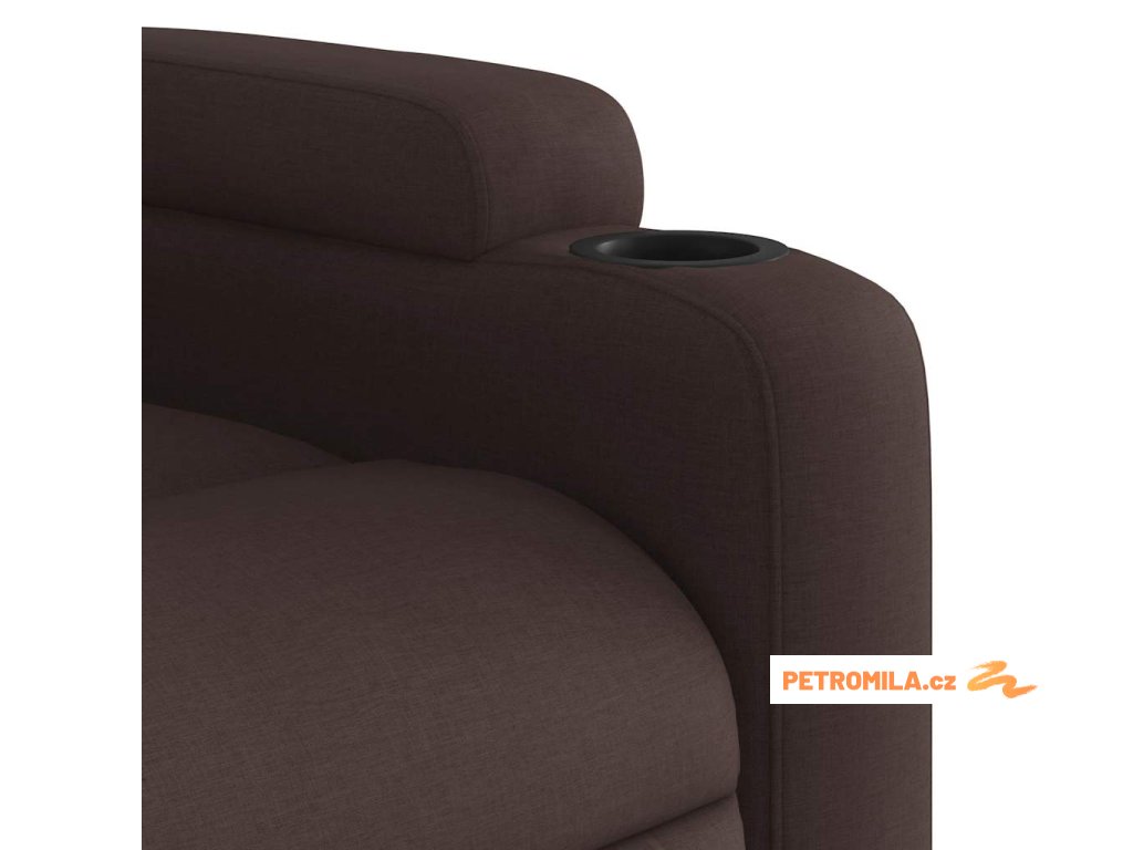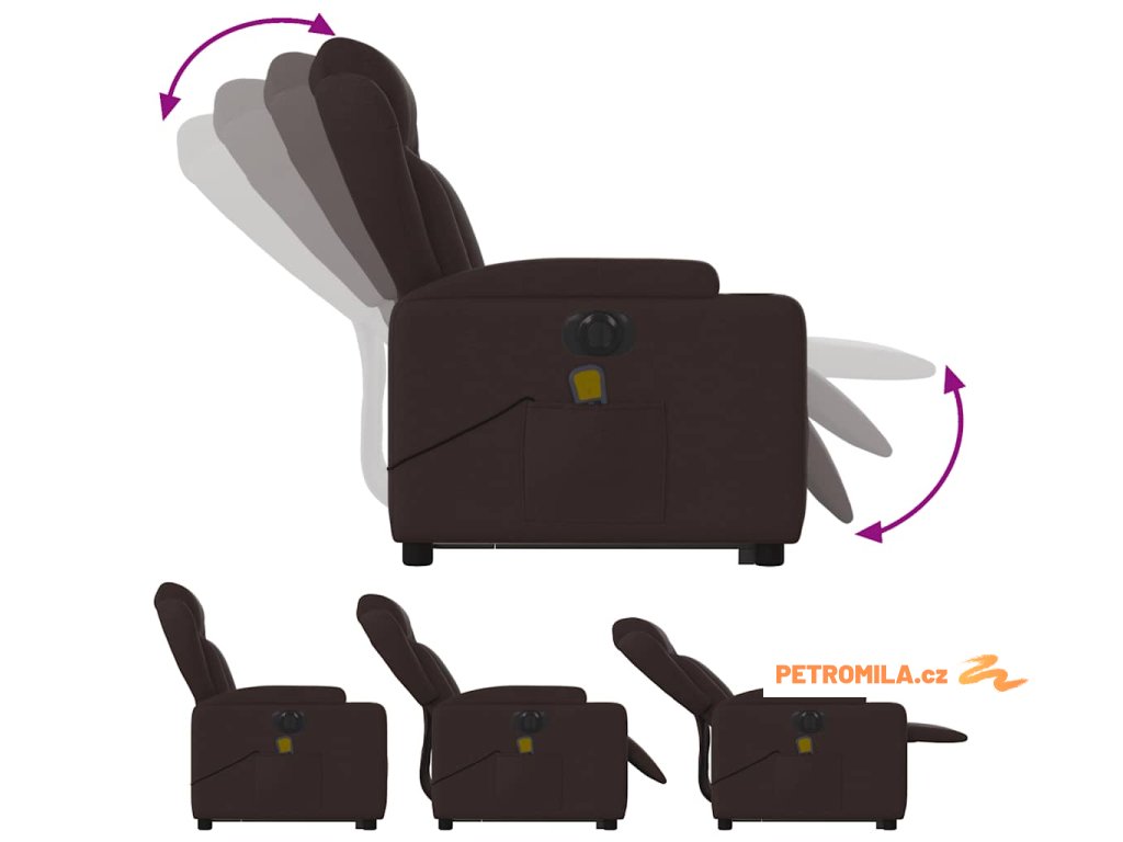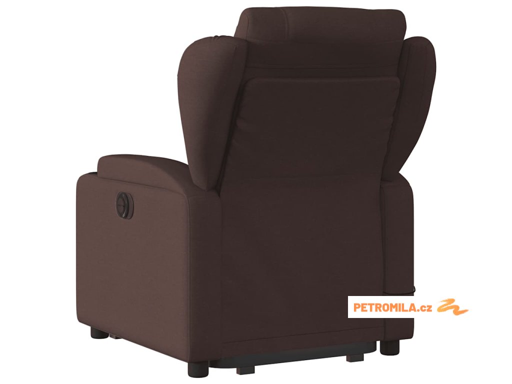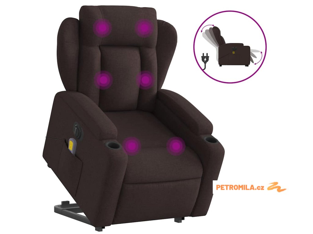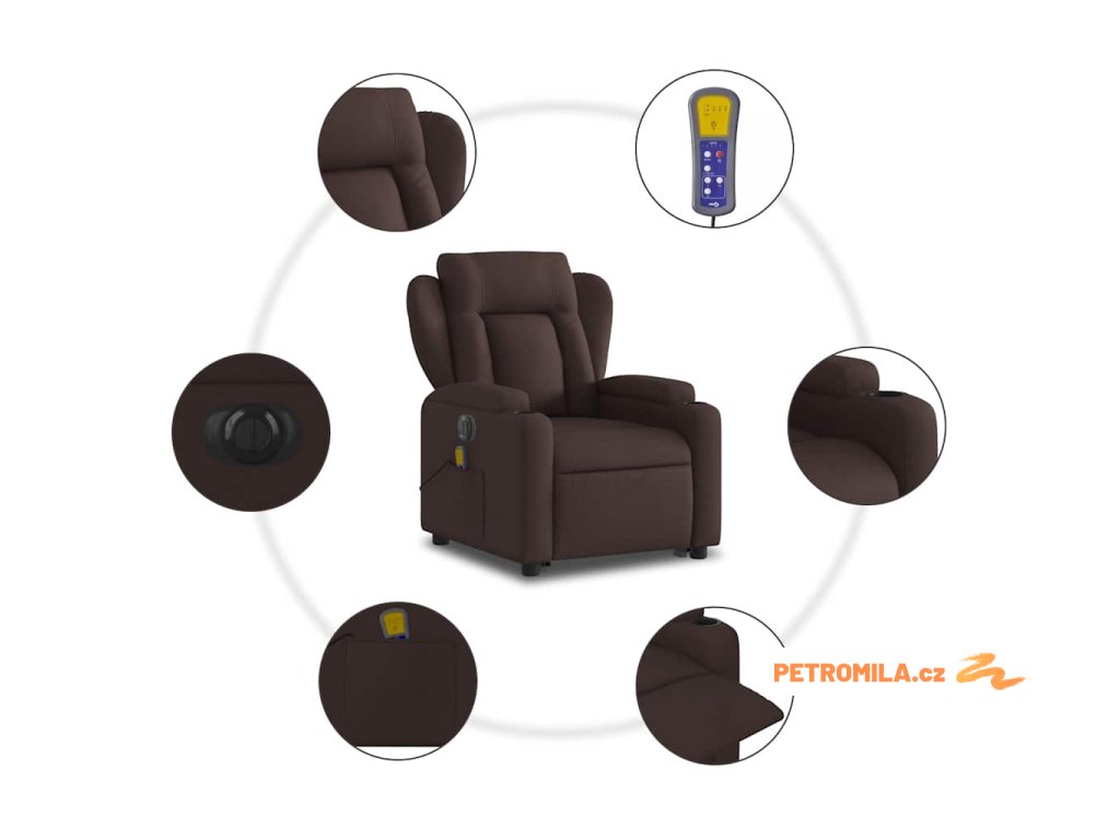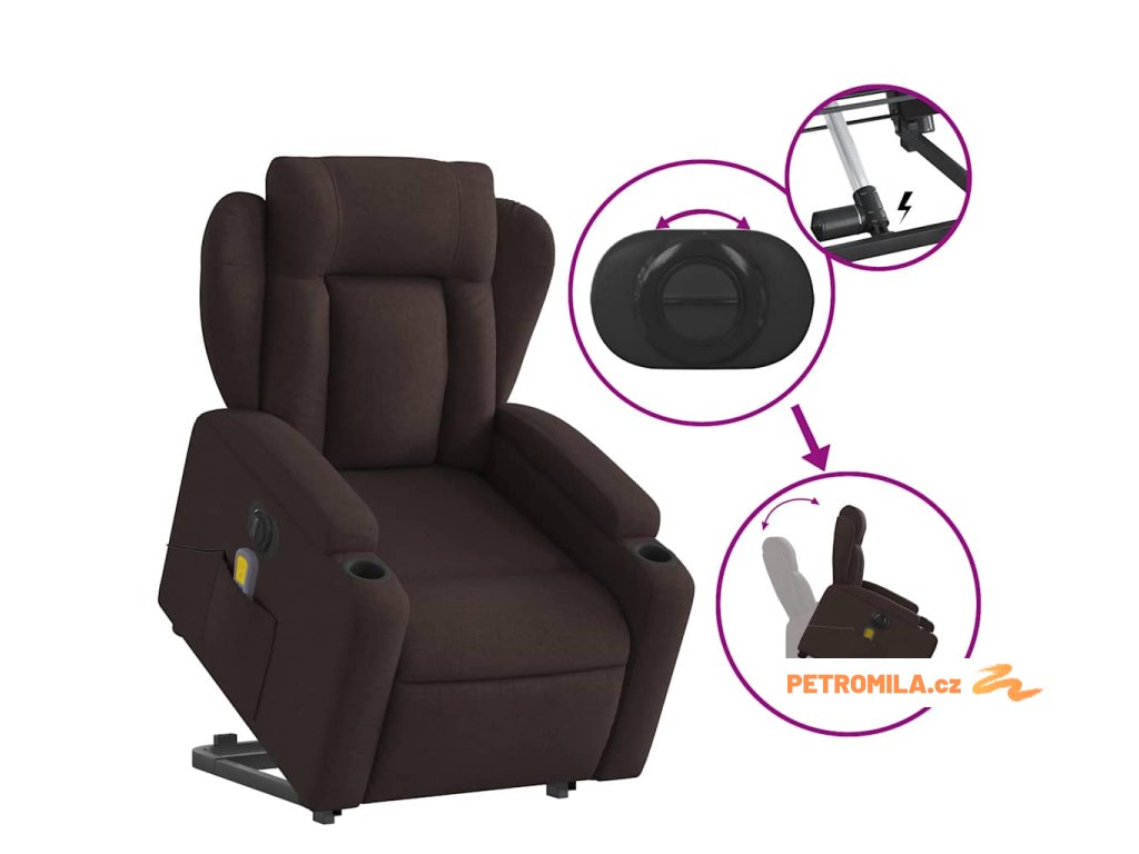 Elektrické zvedací masážní polohovací křeslo tmavě hnědé textil