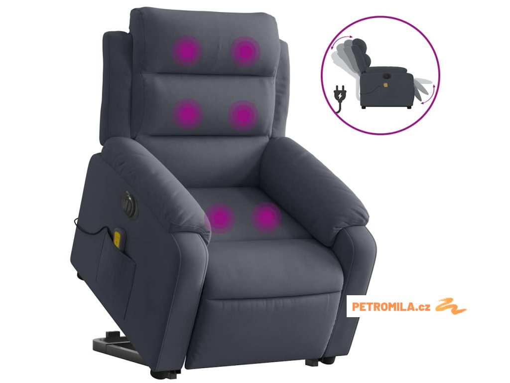 Elektrické zvedací masážní polohovací křeslo tmavě šedé samet