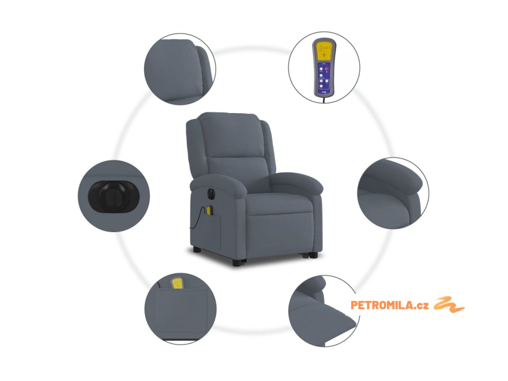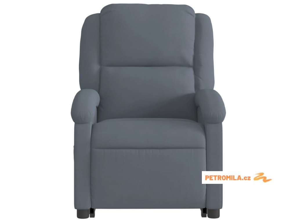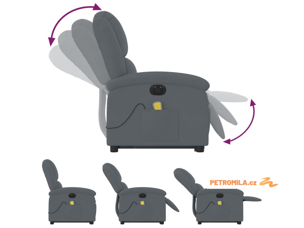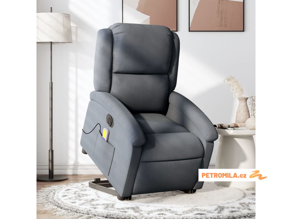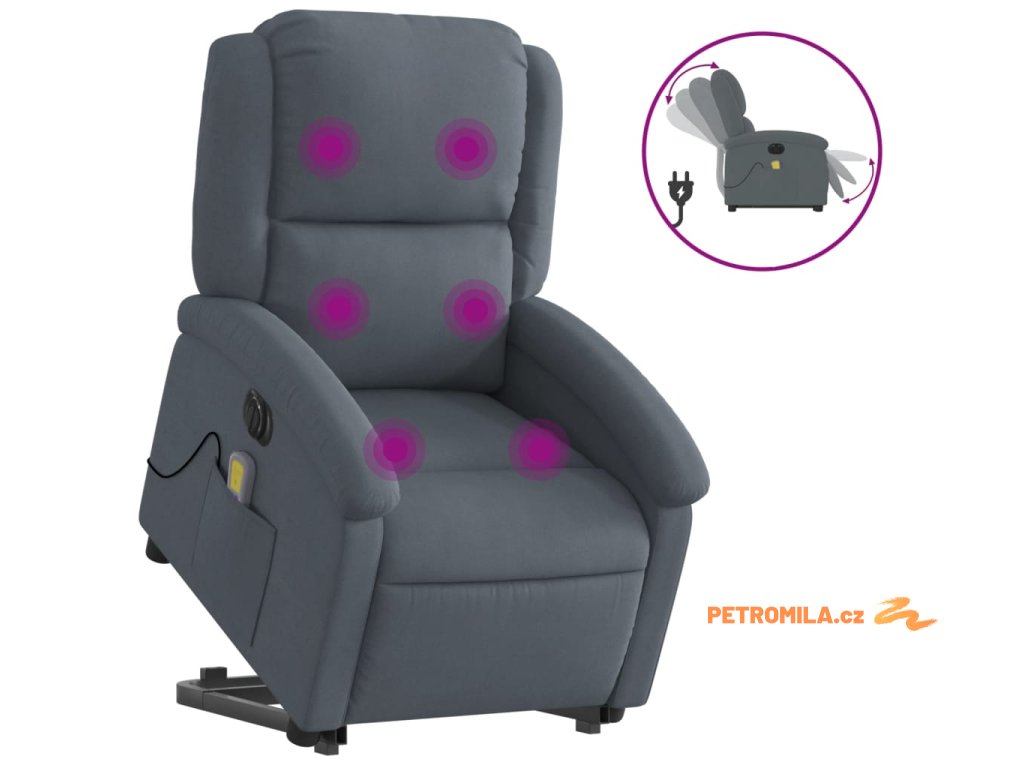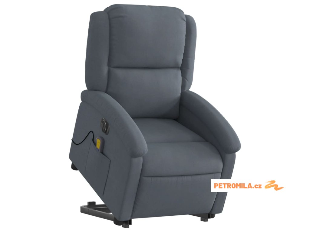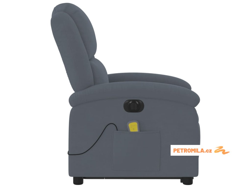 Elektrické zvedací masážní polohovací křeslo tmavě šedé samet