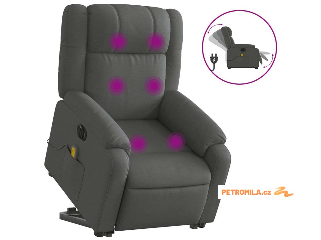 Elektrické zvedací masážní polohovací křeslo tmavě šedé textil