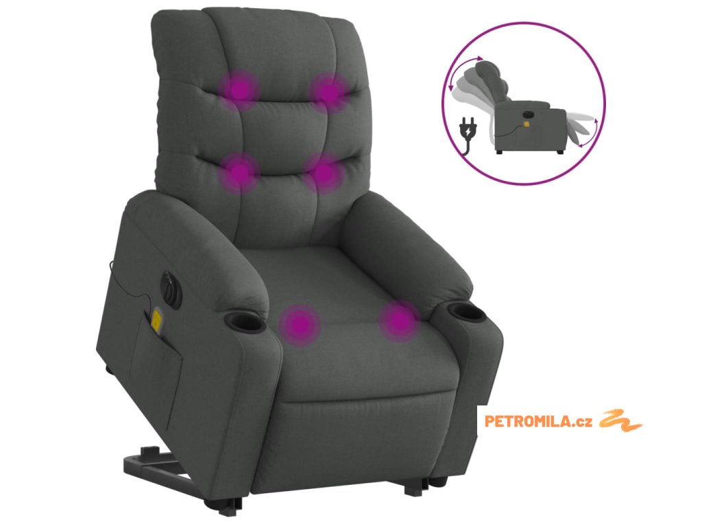 Elektrické zvedací masážní polohovací křeslo tmavě šedé textil