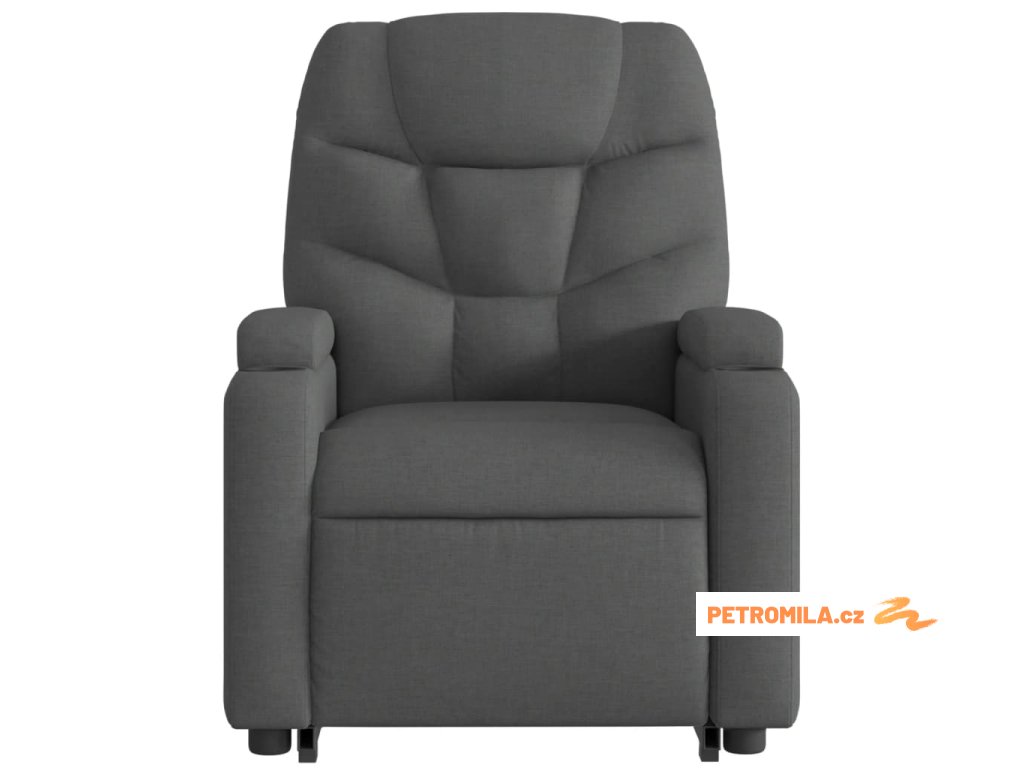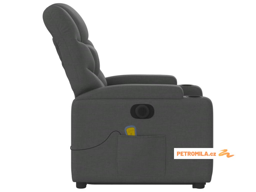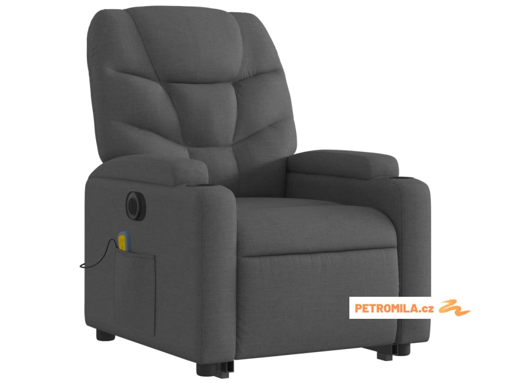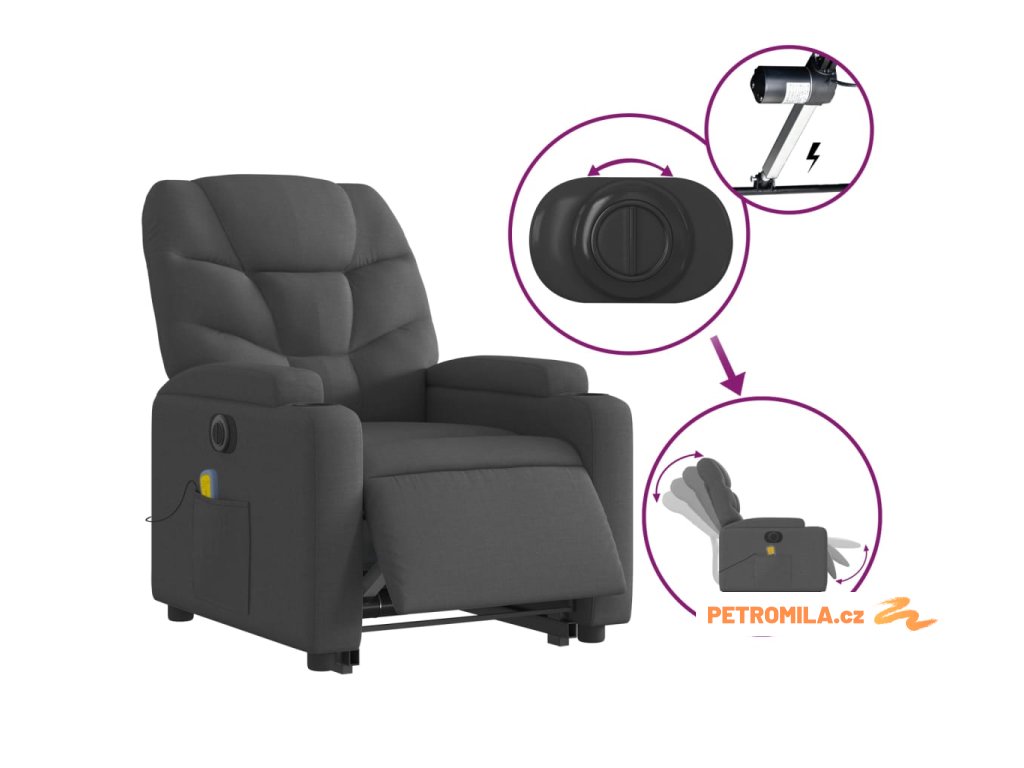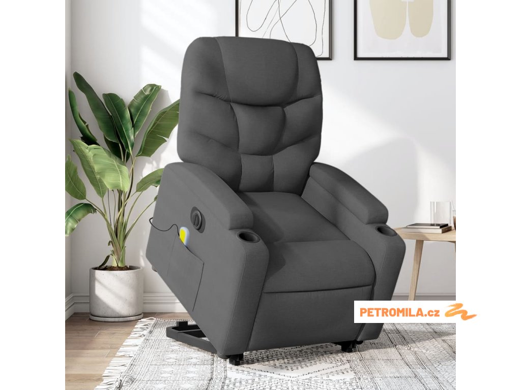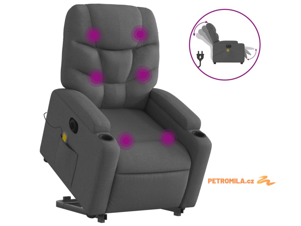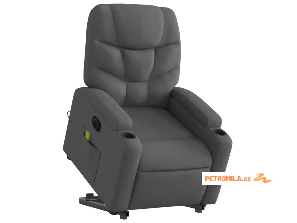 Elektrické zvedací masážní polohovací křeslo tmavě šedé textil