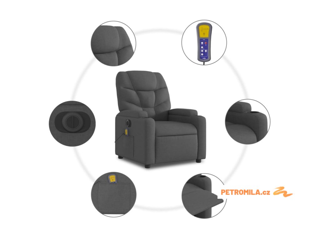 Elektrické masážní polohovací křeslo tmavě šedé textil