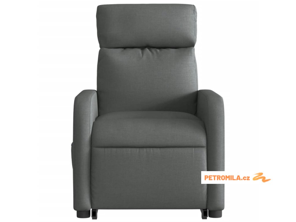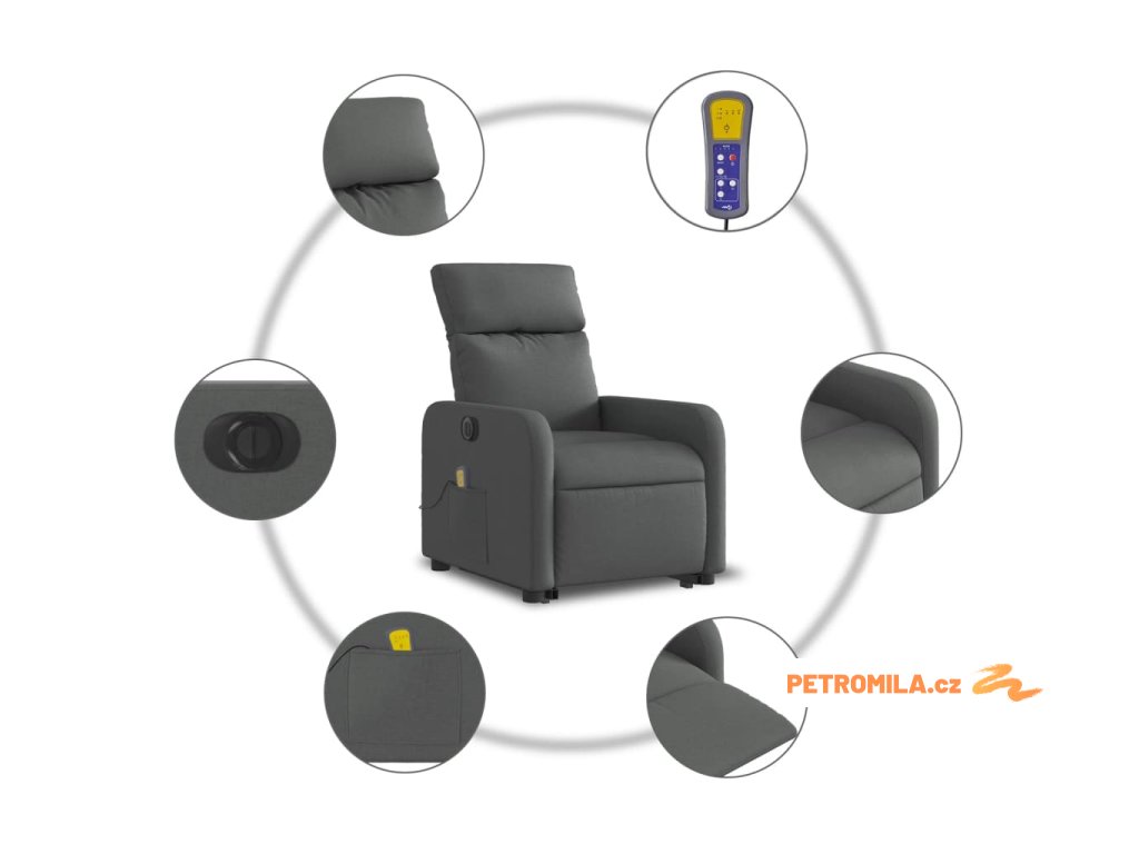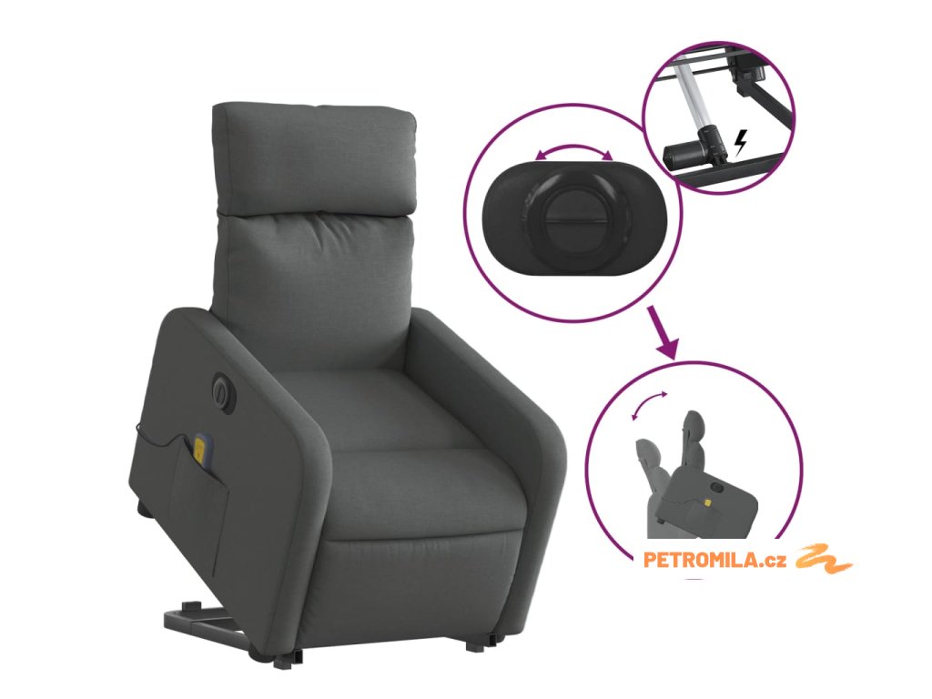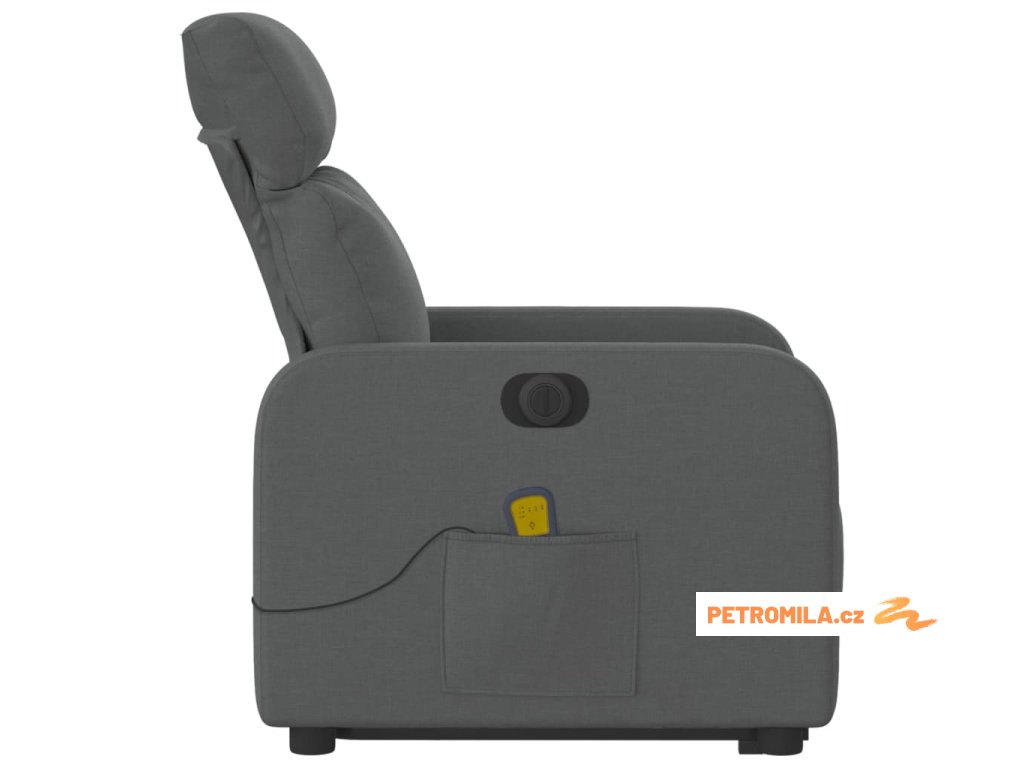 Elektrické zvedací masážní polohovací křeslo tmavě šedé textil