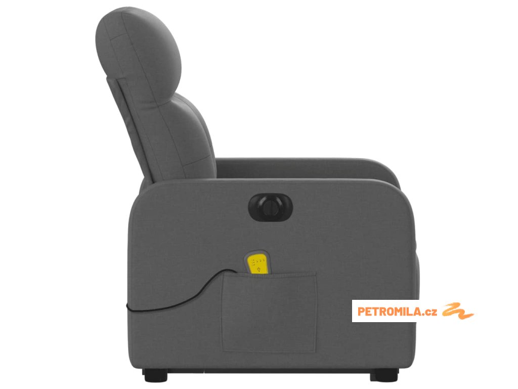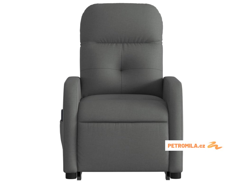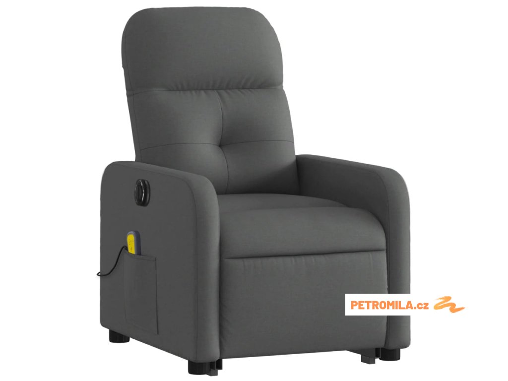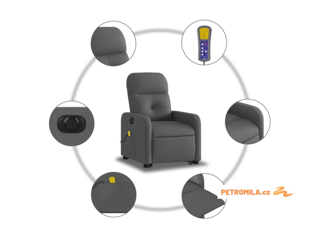 Elektrické zvedací masážní polohovací křeslo tmavě šedé textil