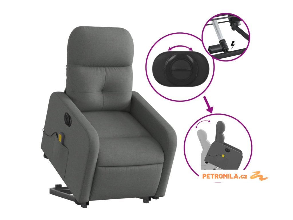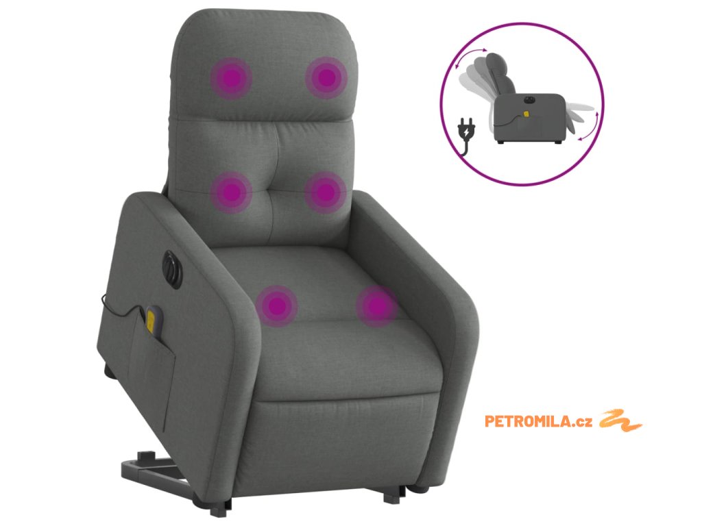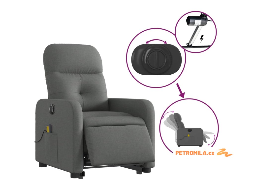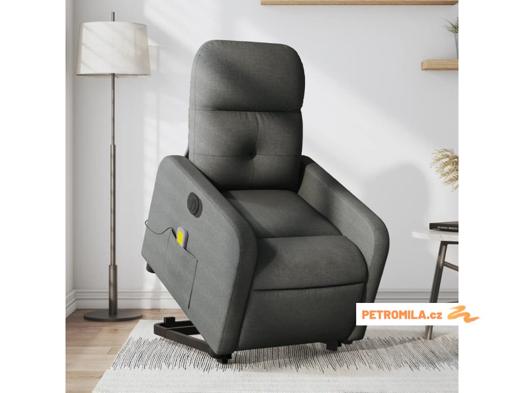 Elektrické zvedací masážní polohovací křeslo tmavě šedé textil