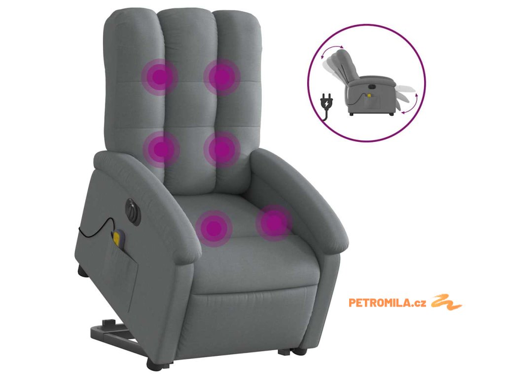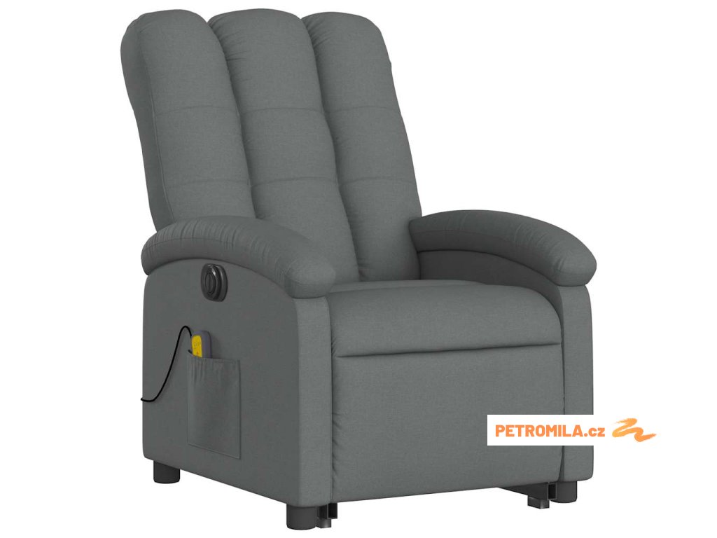 Elektrické zvedací masážní polohovací křeslo tmavě šedé textil