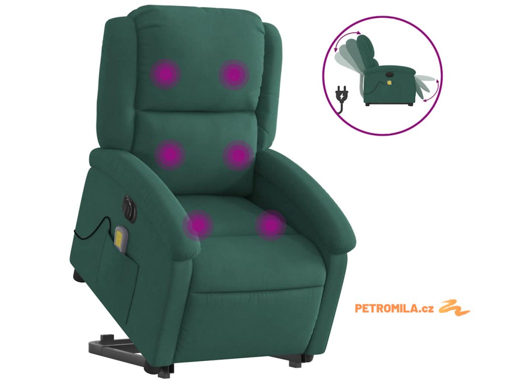 Elektrické zvedací masážní polohovací křeslo tmavě zelené samet