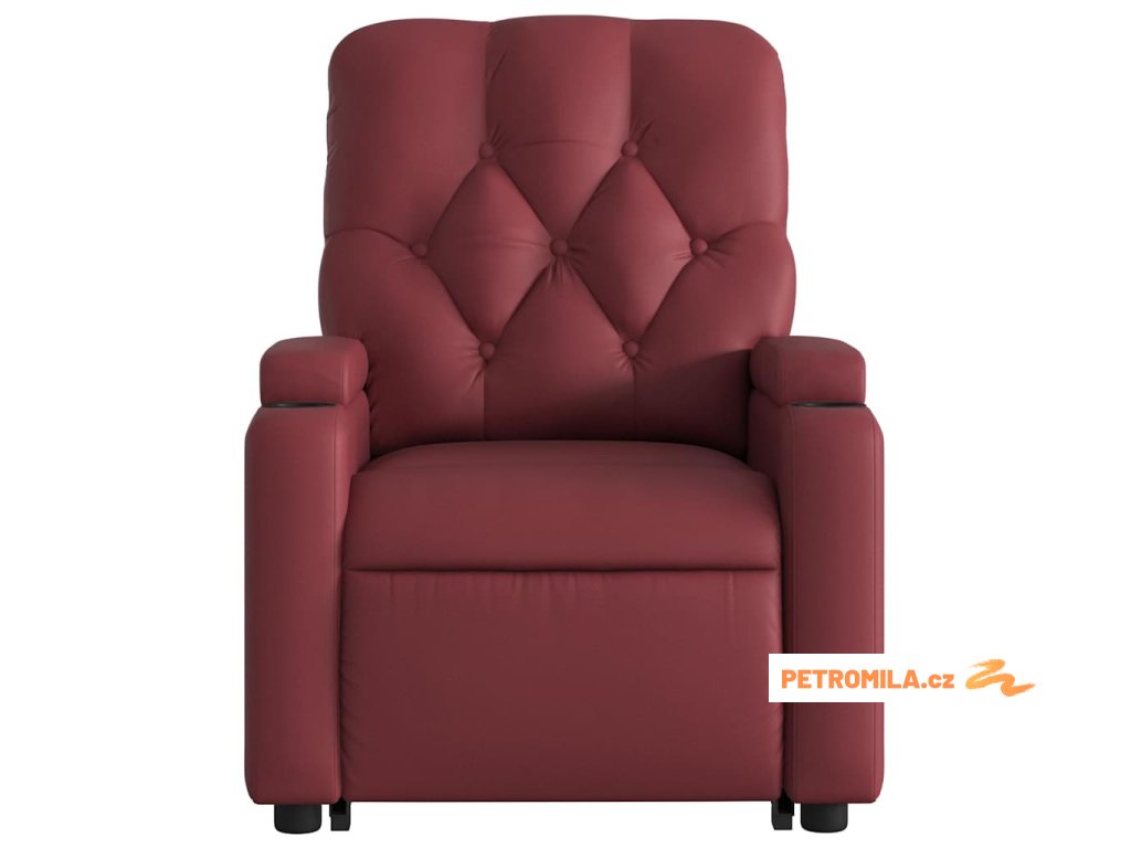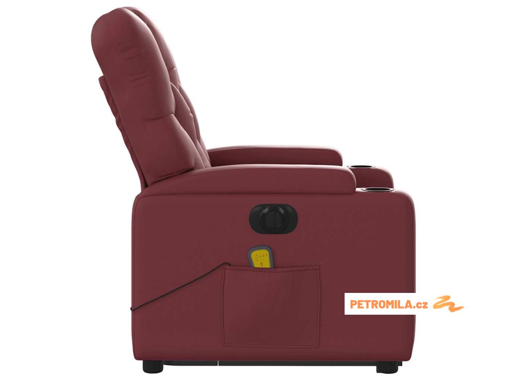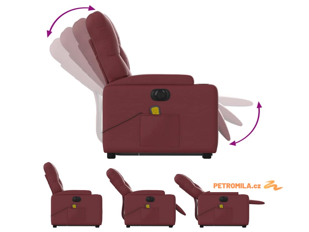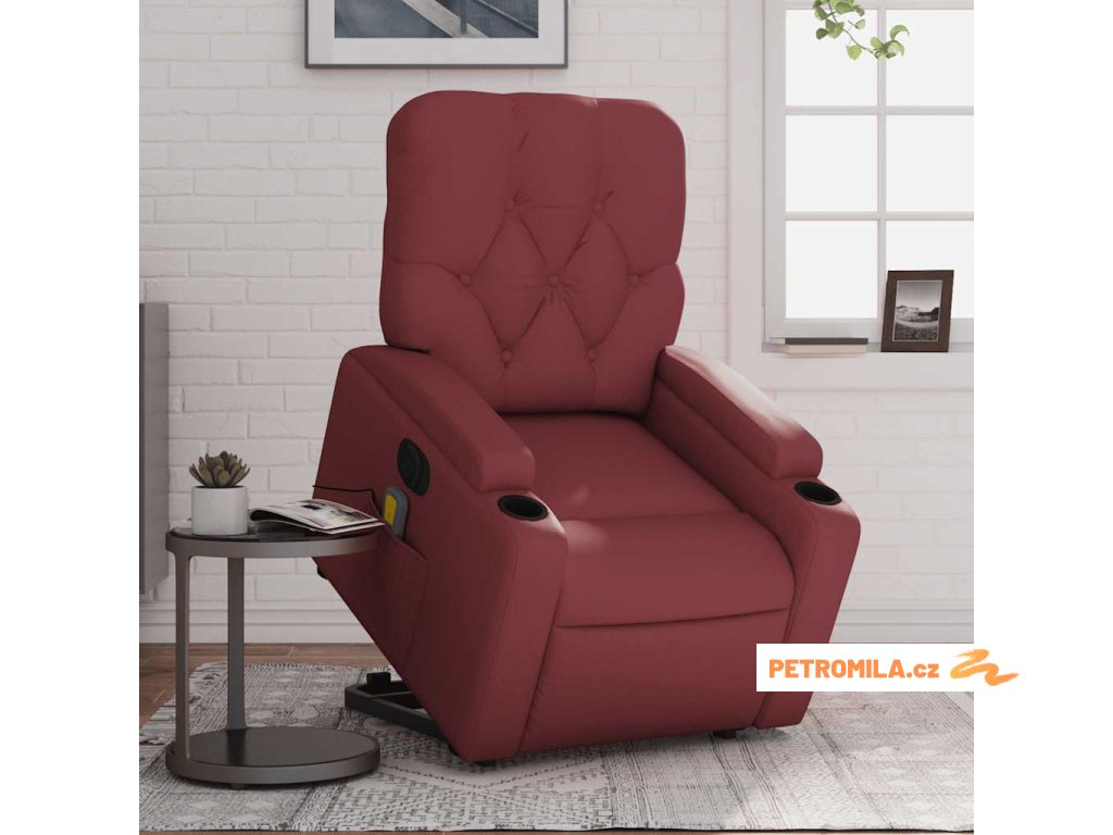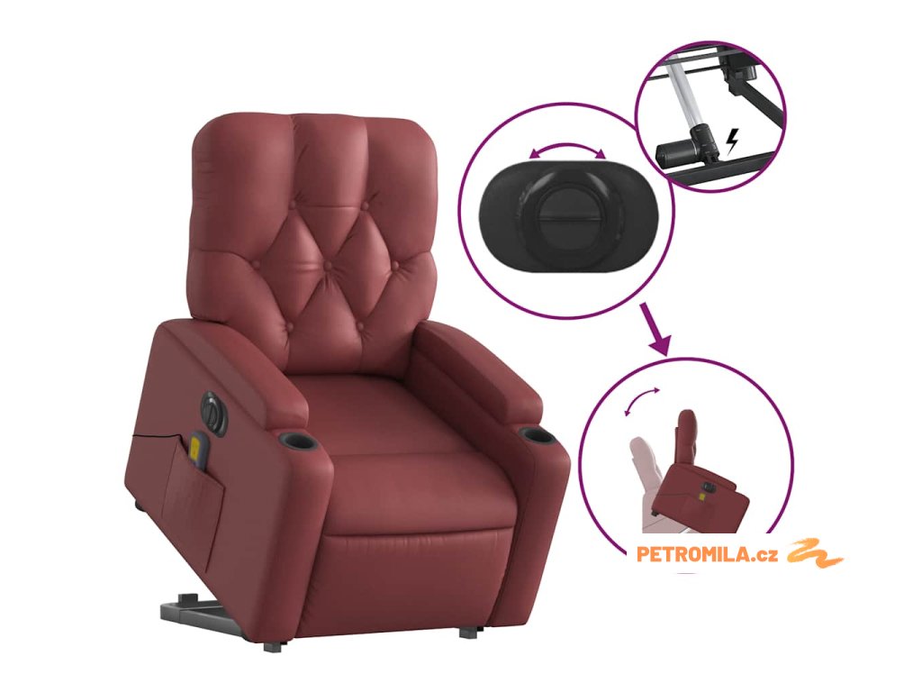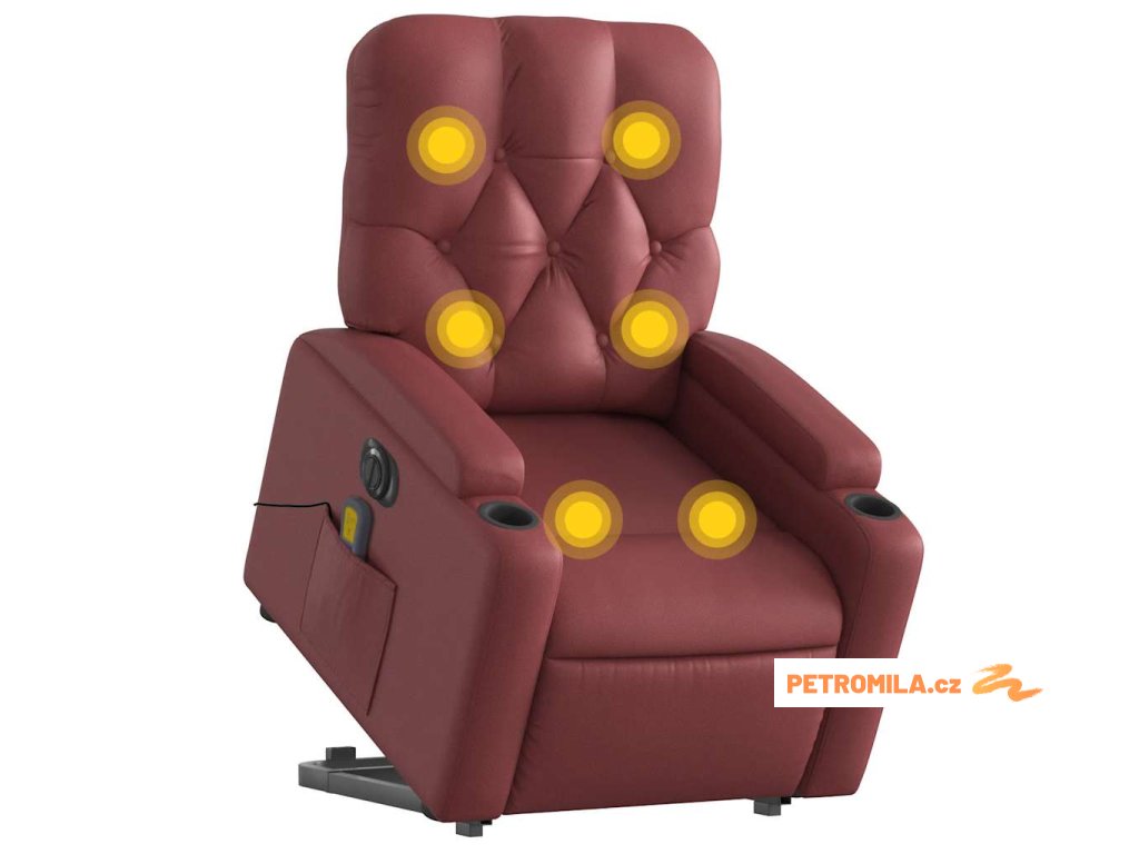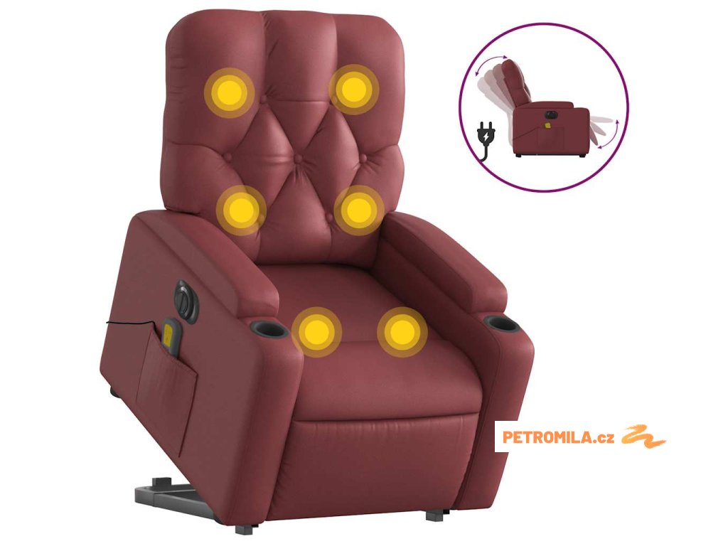 Elektrické zvedací masážní polohovací křeslo vínové umělá kůže