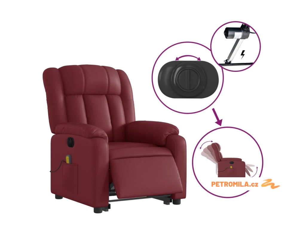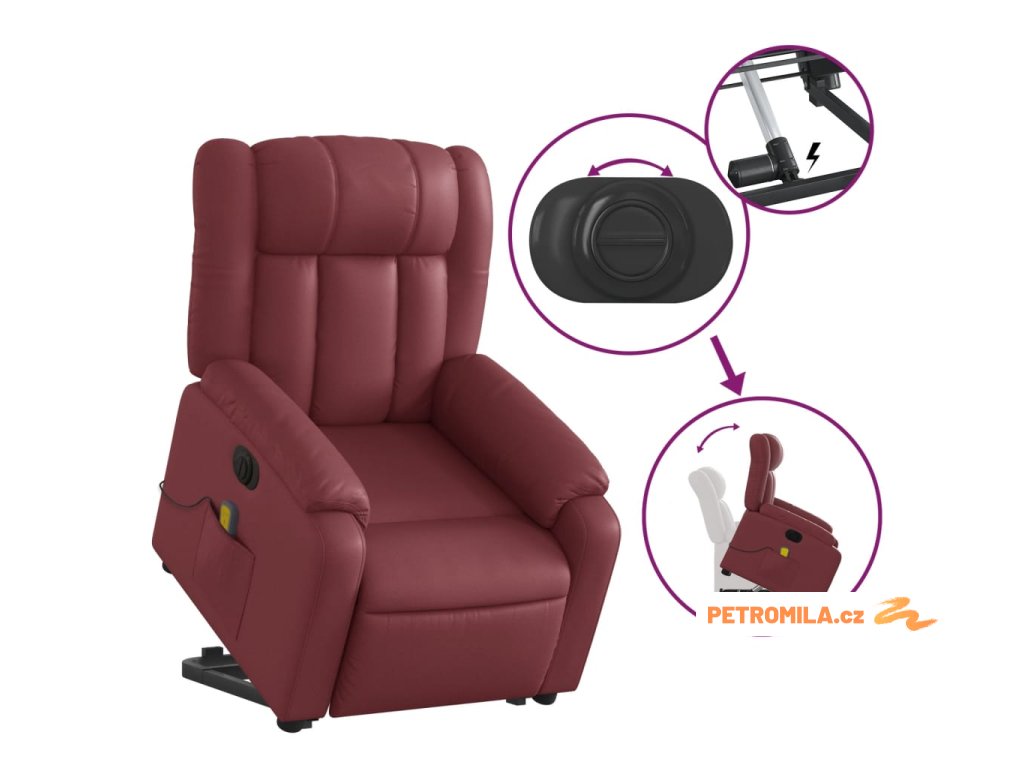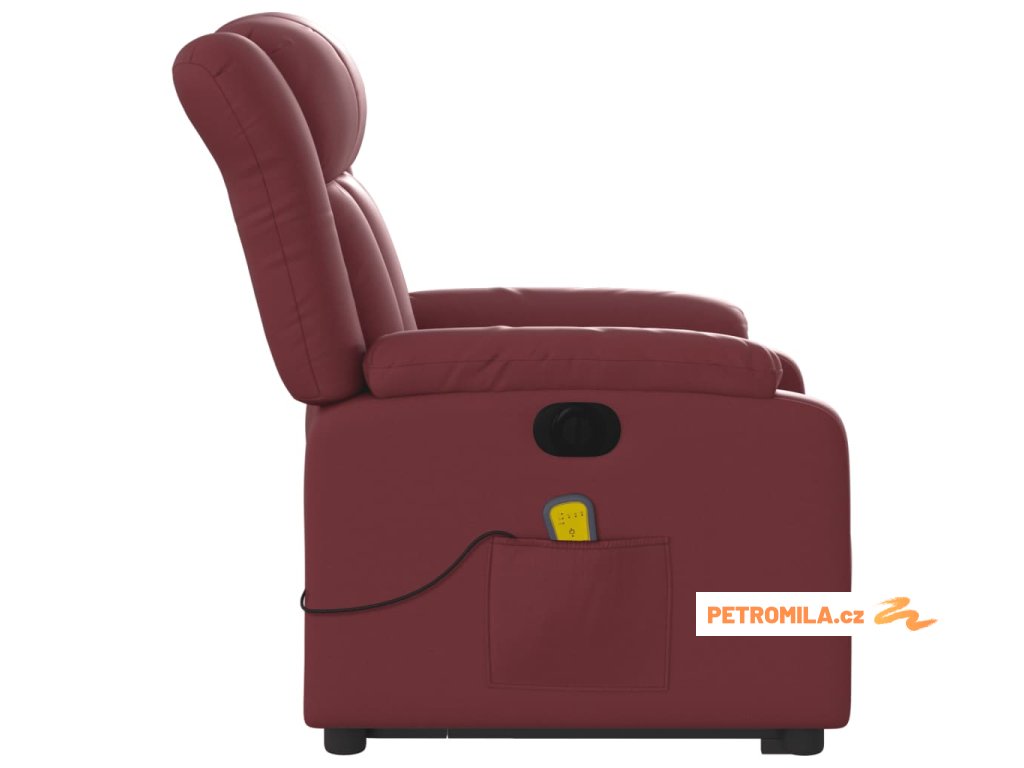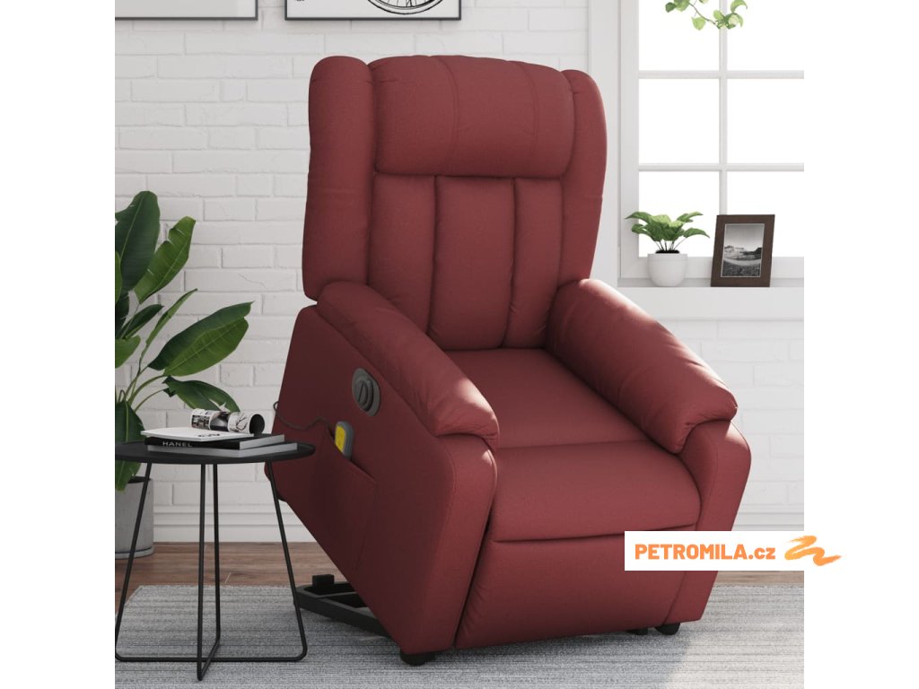 Elektrické zvedací masážní polohovací křeslo vínové umělá kůže