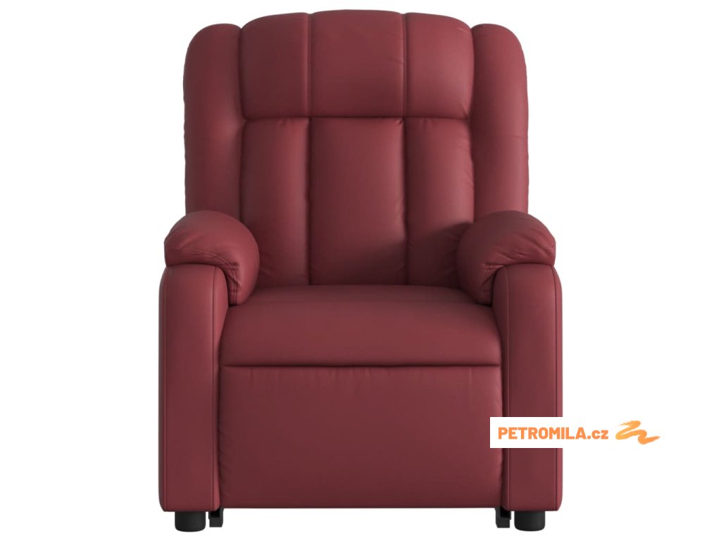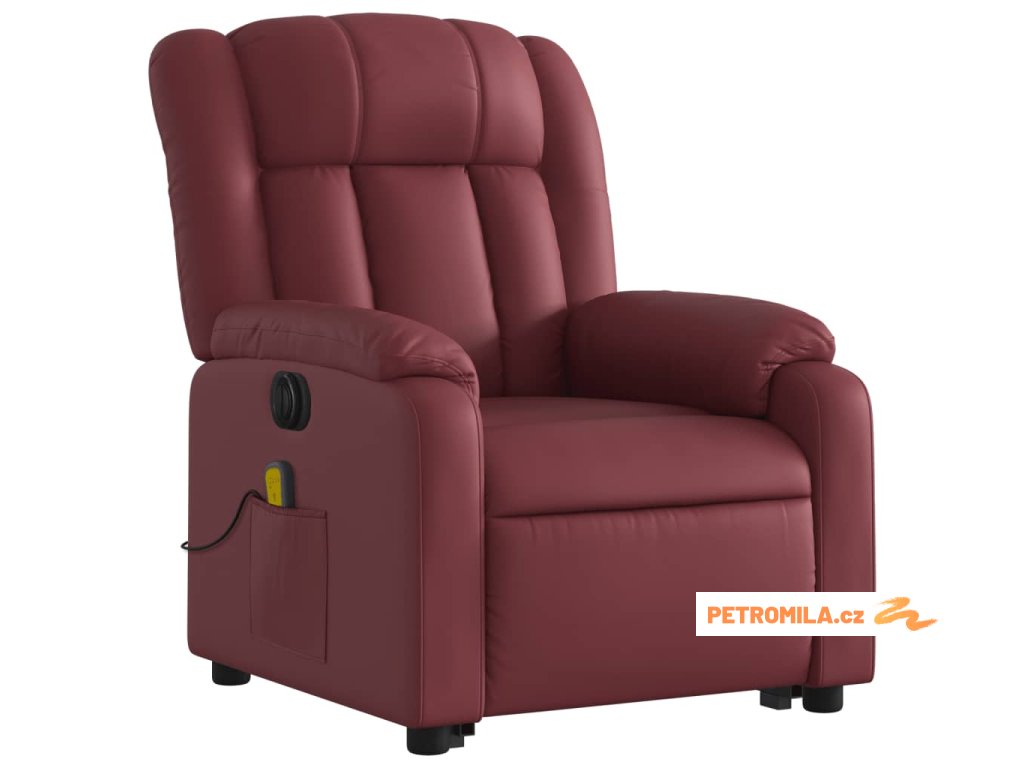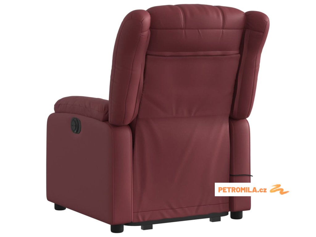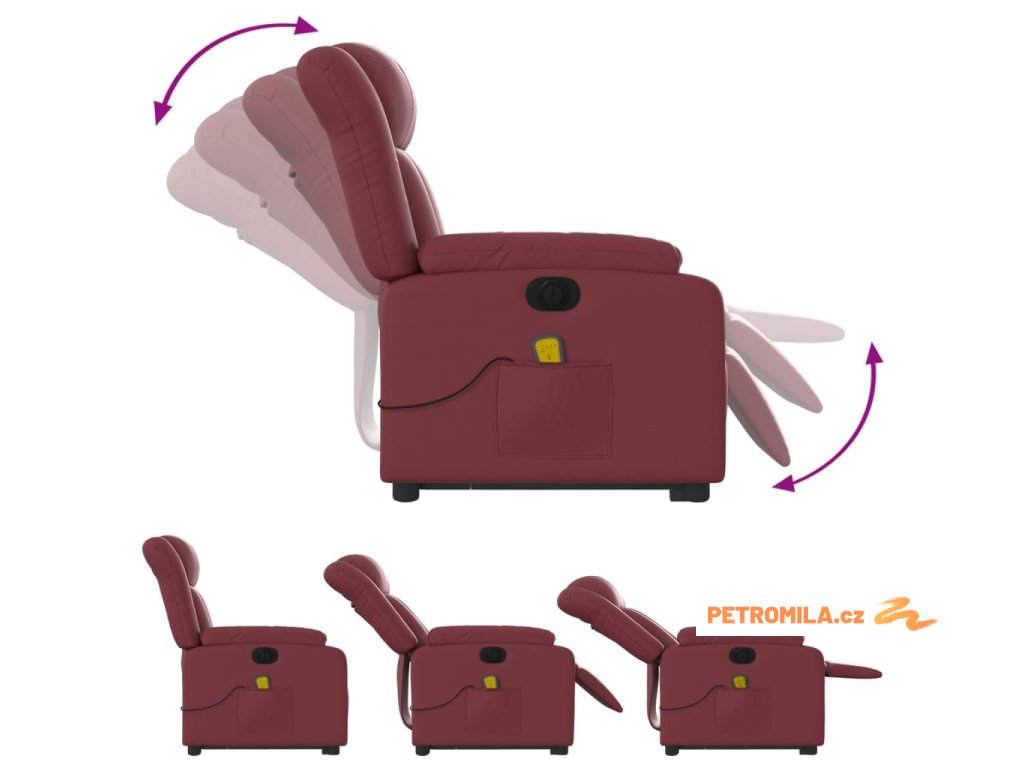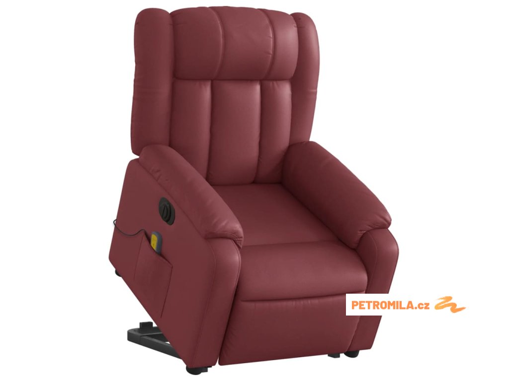 Elektrické zvedací masážní polohovací křeslo vínové umělá kůže