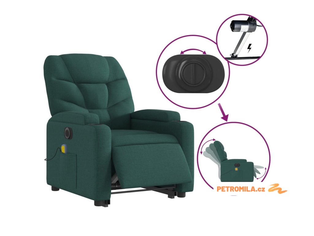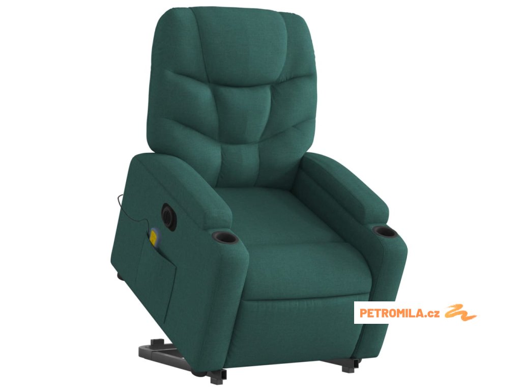 Elektrické zvedací masážní polohovací křeslo zelené textil