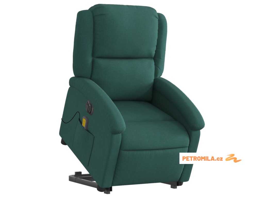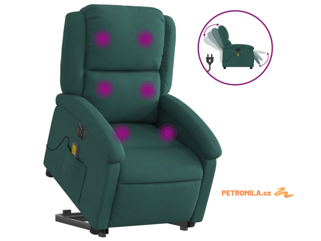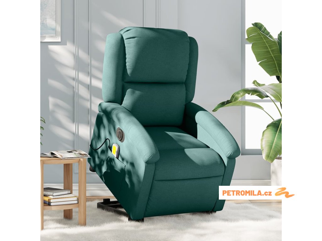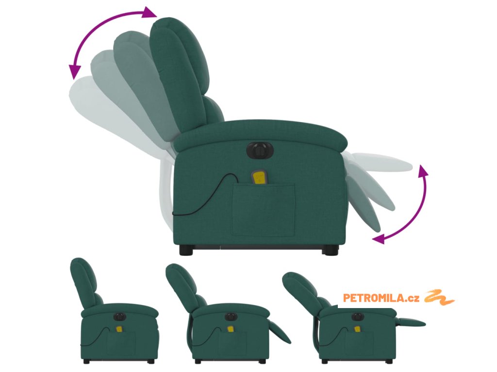 Elektrické zvedací masážní polohovací křeslo zelené textil