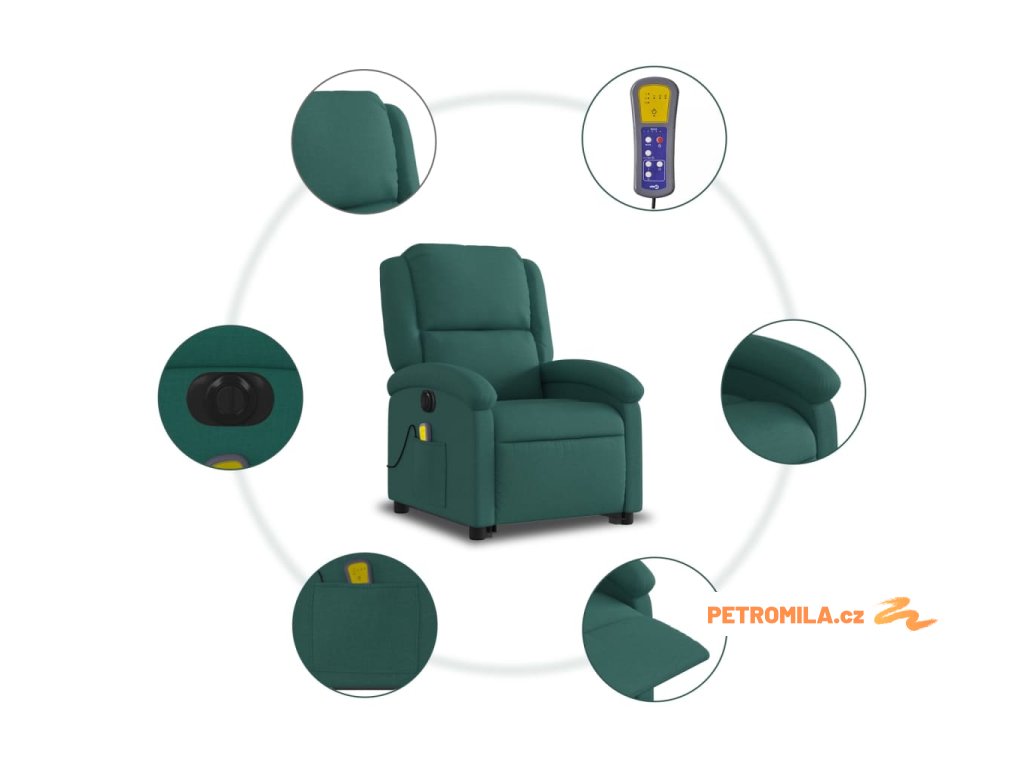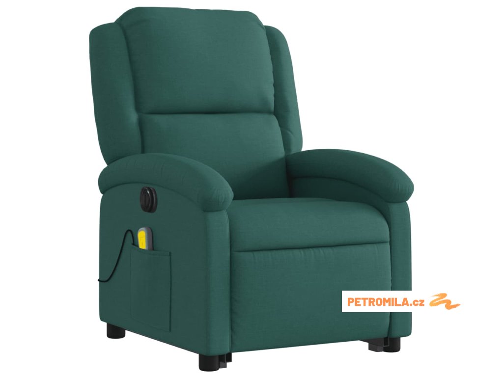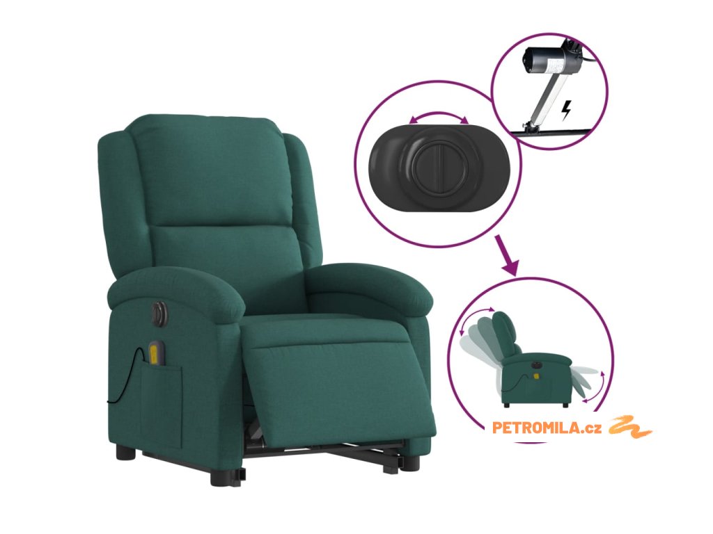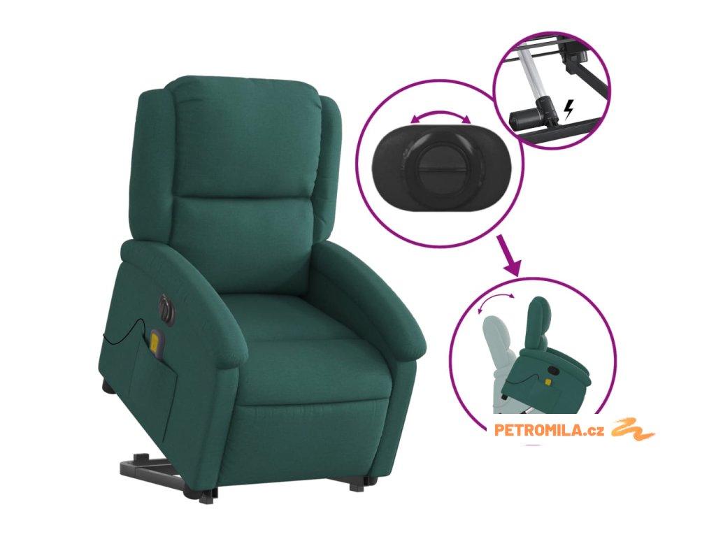 Elektrické zvedací masážní polohovací křeslo zelené textil