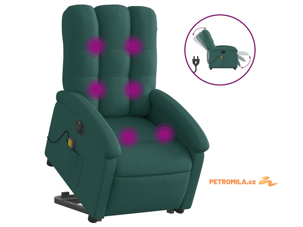 Elektrické zvedací masážní polohovací křeslo tmavě zelené samet