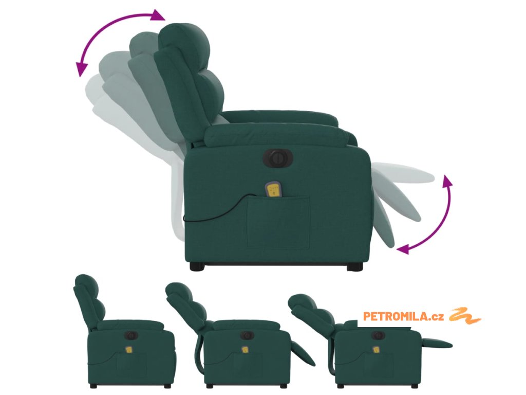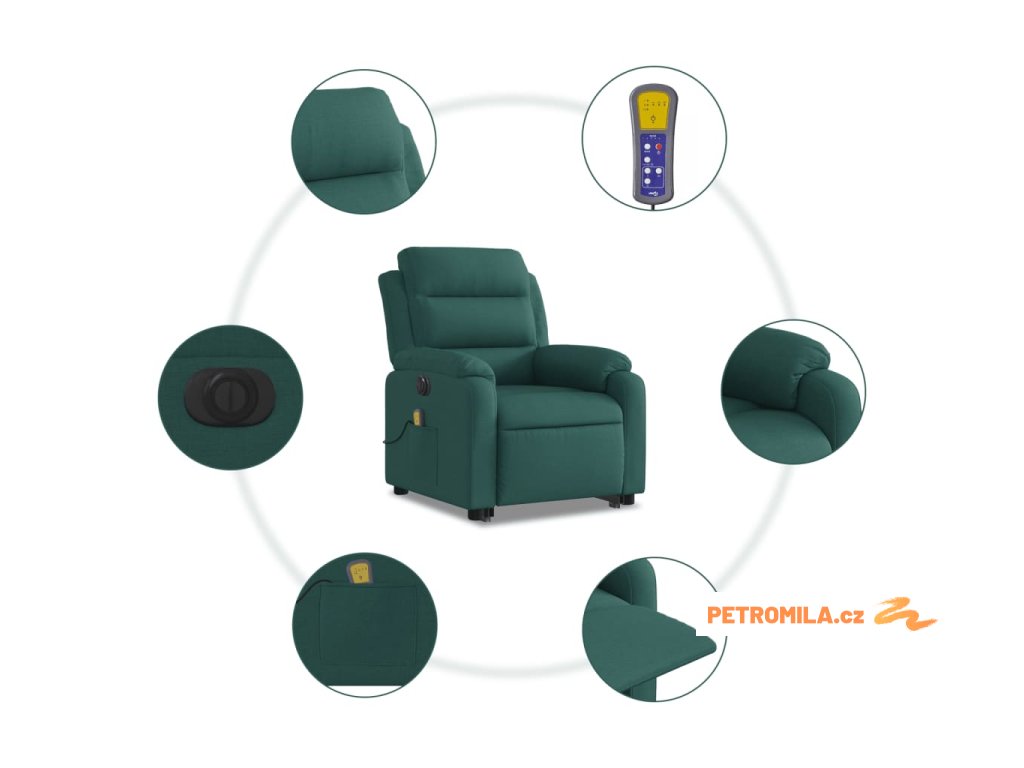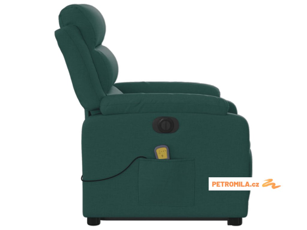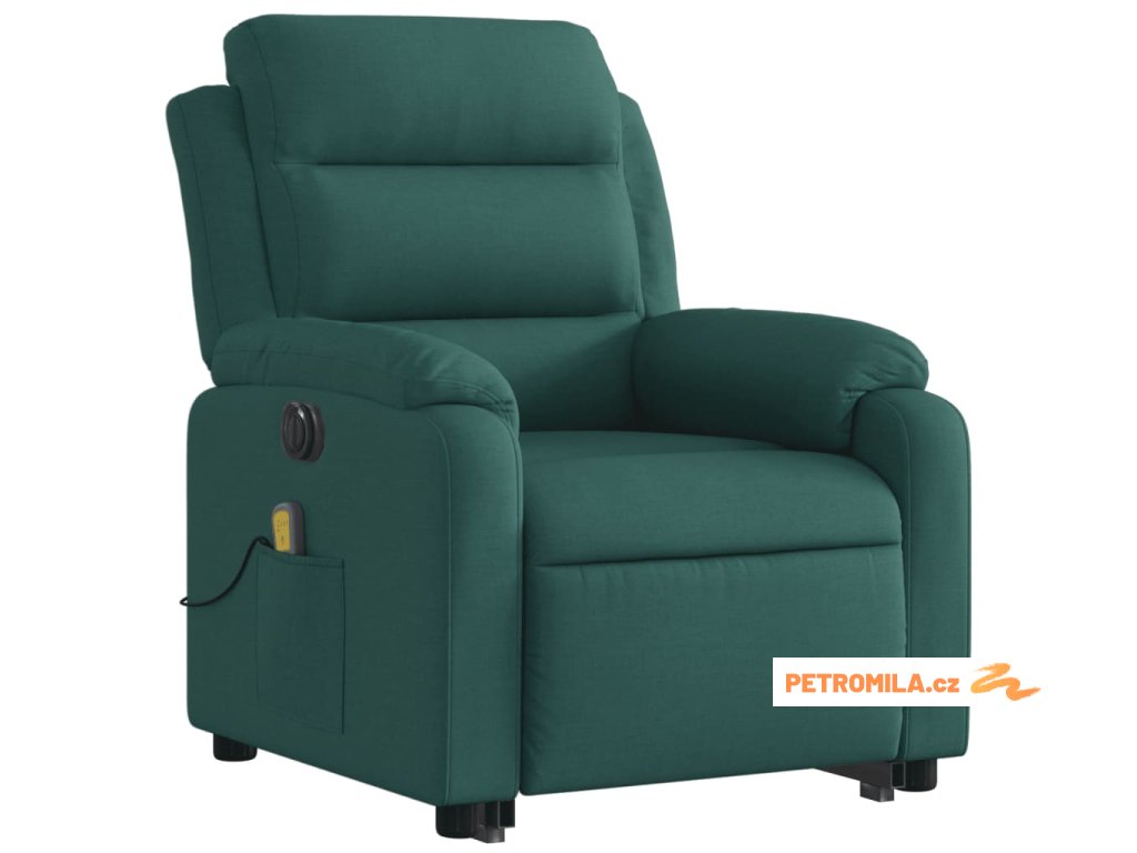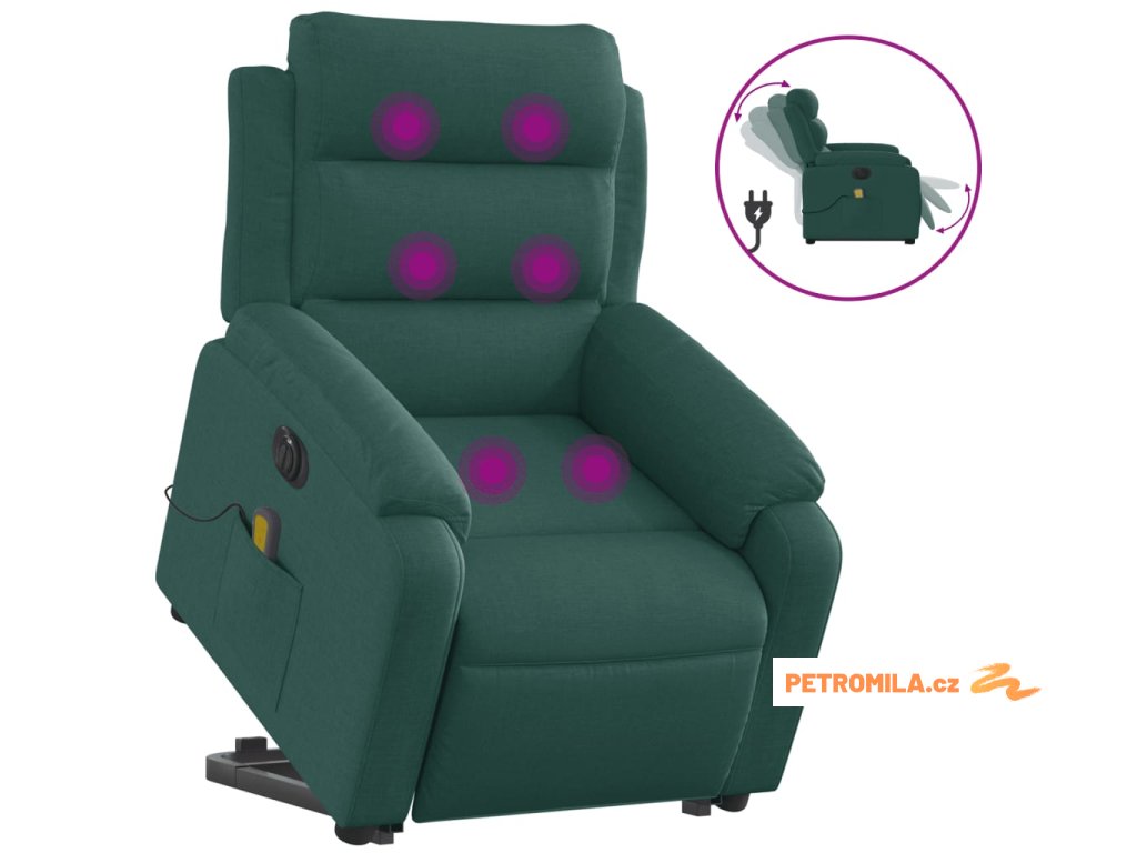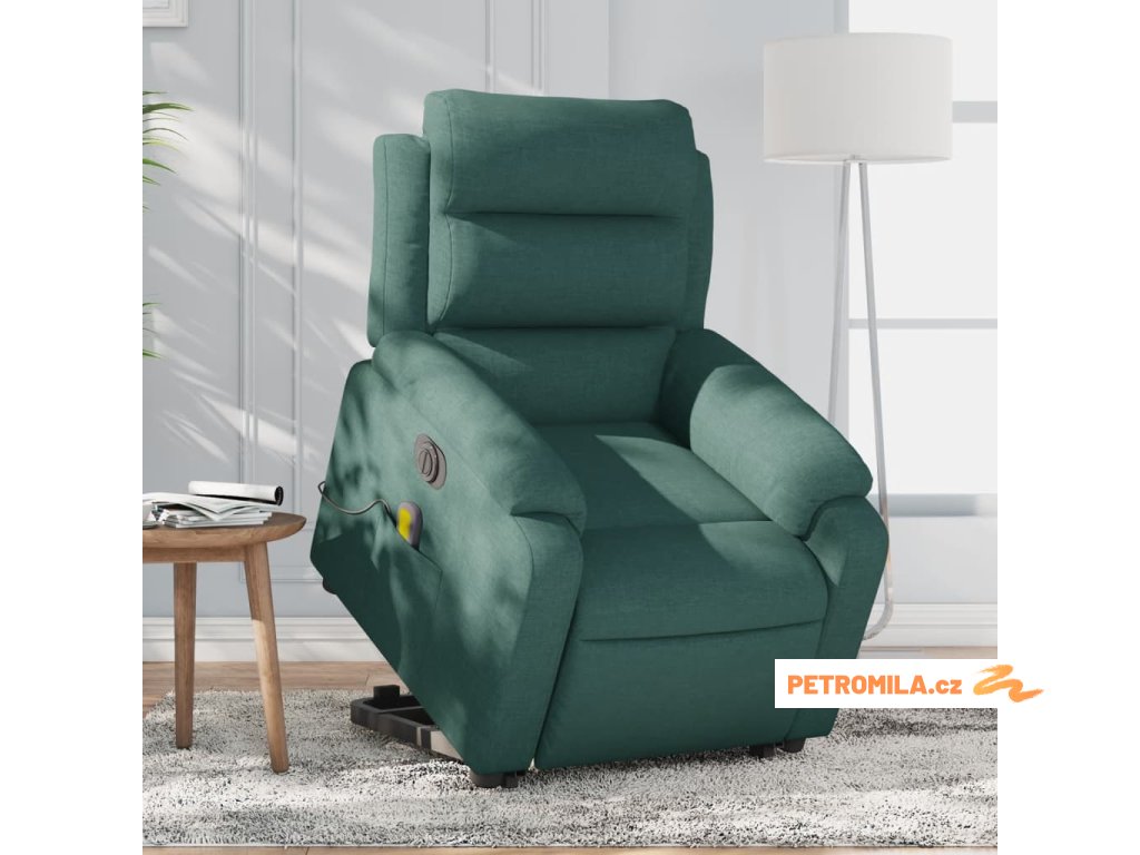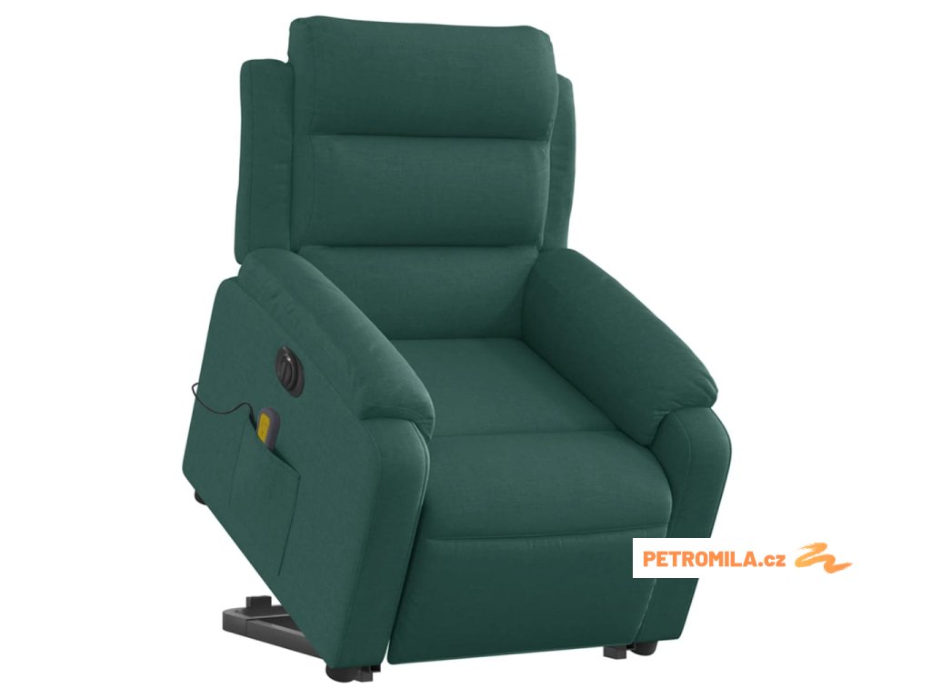 Elektrické zvedací masážní polohovací křeslo zelené textil