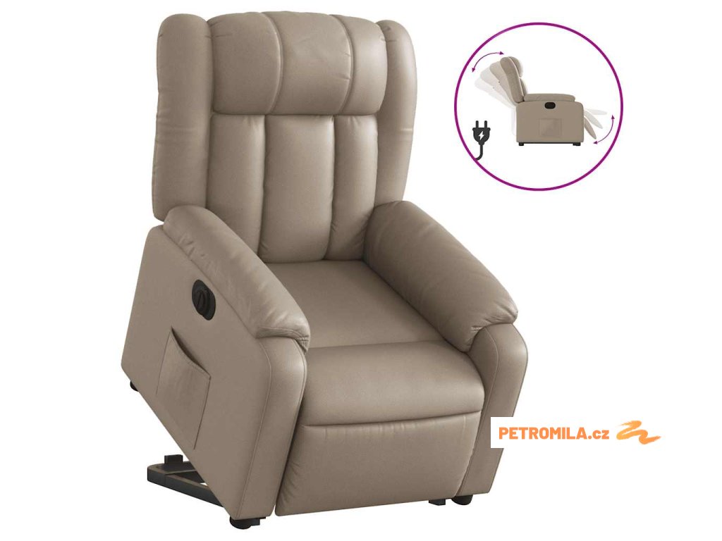 Elektrické zvedací polohovací křeslo cappuccino umělá kůže