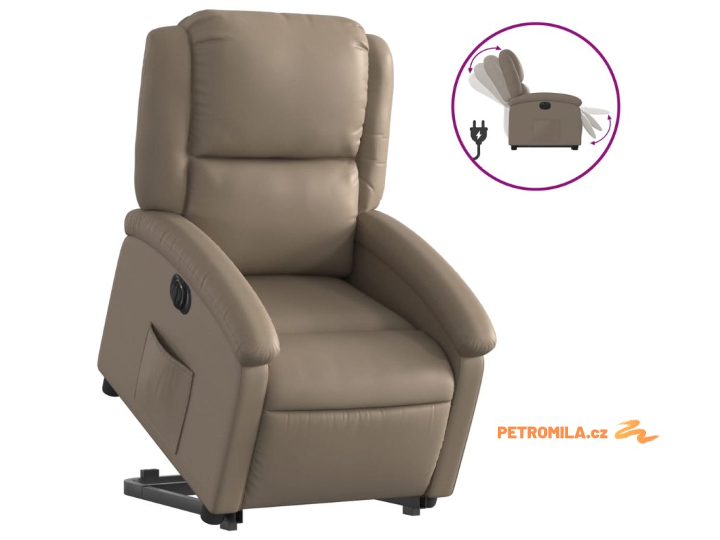 Elektrické zvedací polohovací křeslo cappuccino umělá kůže