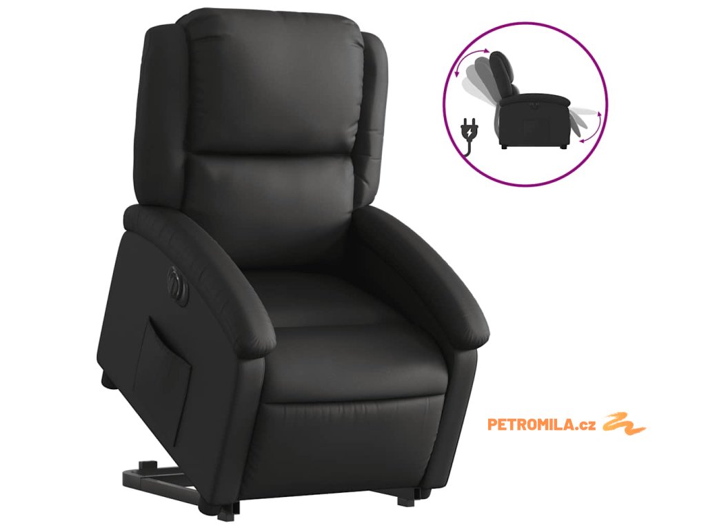 Elektrické zvedací polohovací křeslo černé pravá kůže