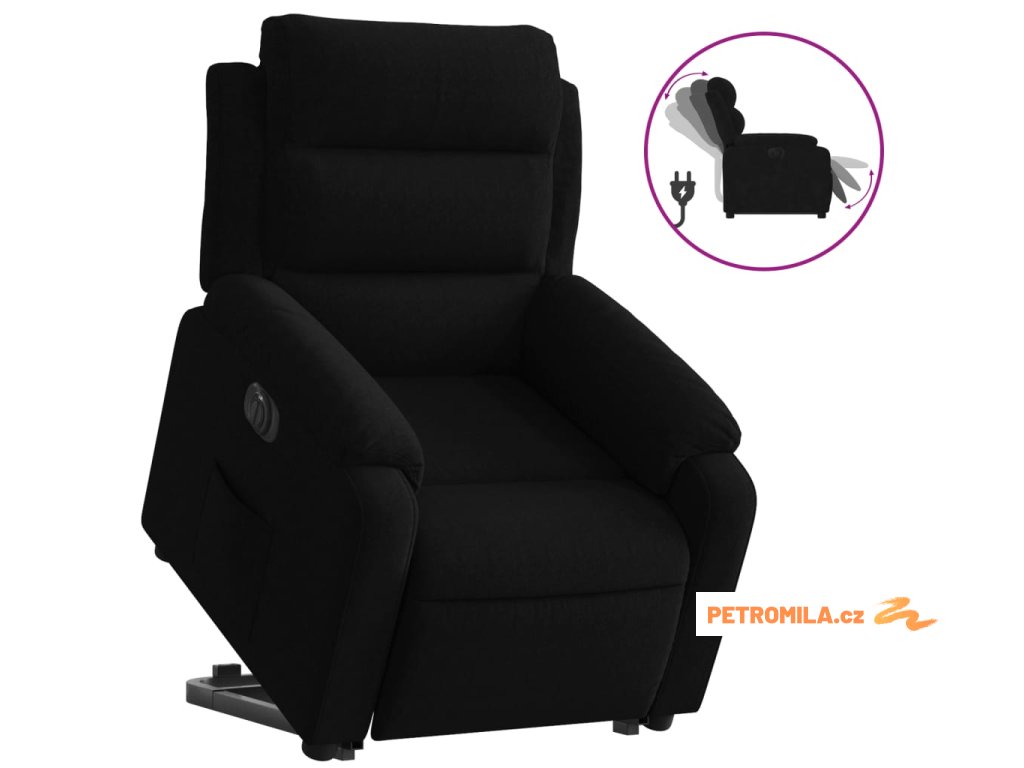 Elektrické zvedací polohovací křeslo černé samet