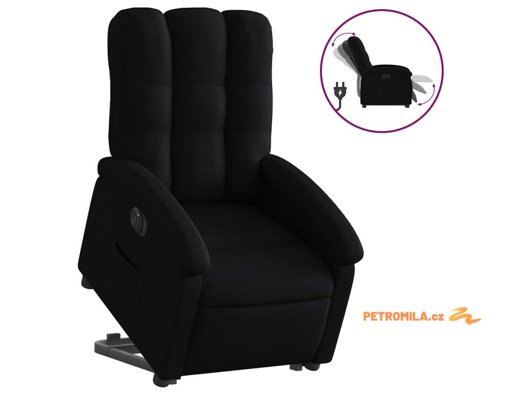 Elektrické zvedací polohovací křeslo černé textil