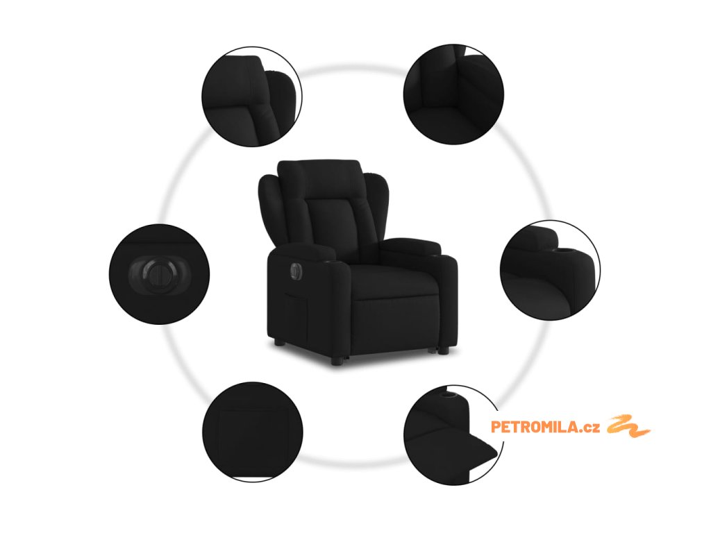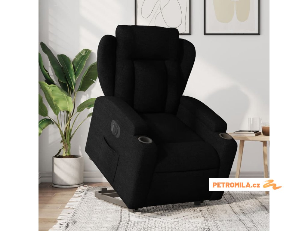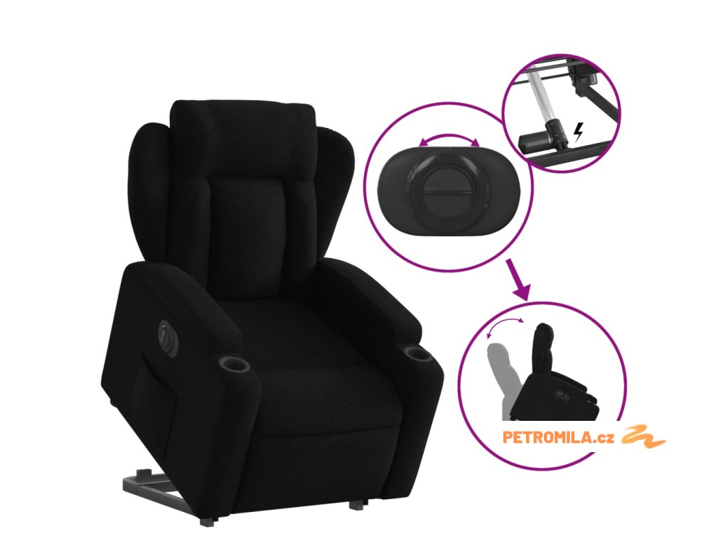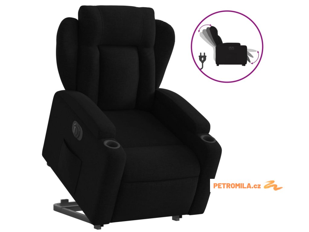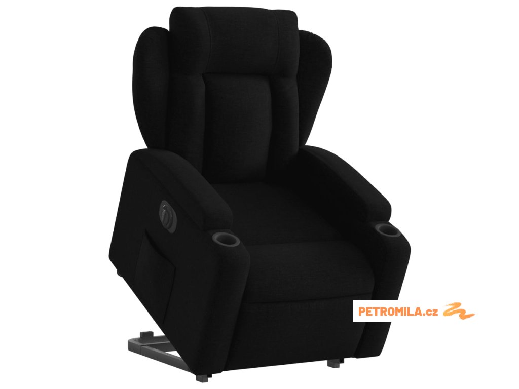 Elektrické zvedací polohovací křeslo černé textil