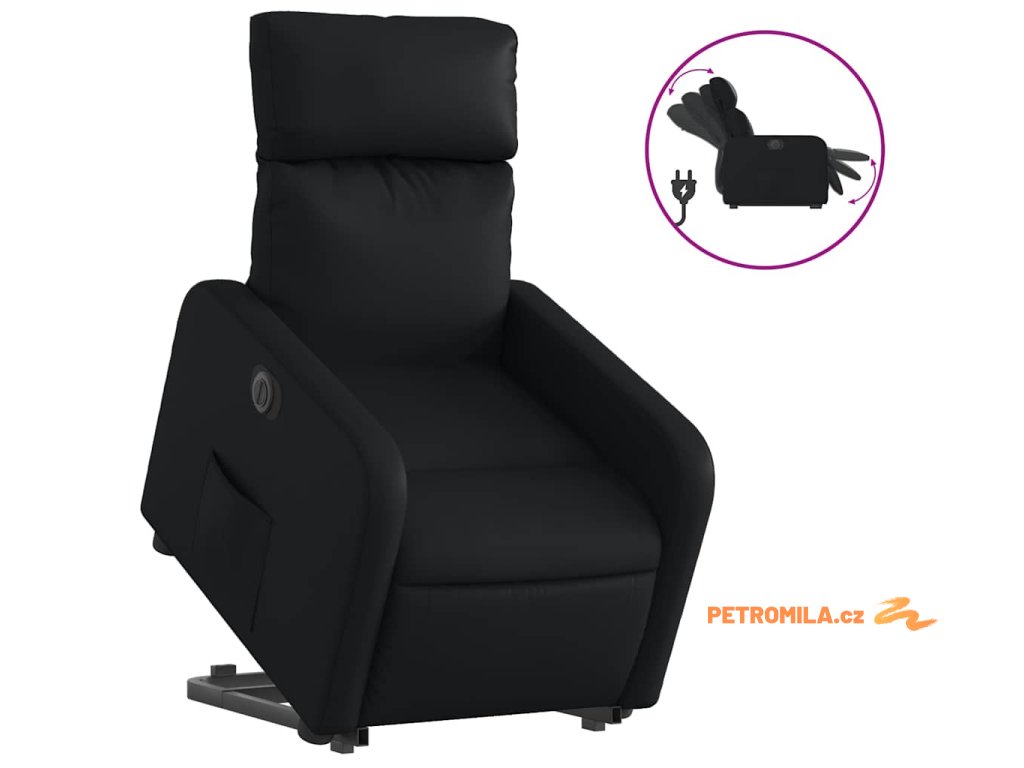 Elektrické zvedací polohovací křeslo černé umělá kůže
