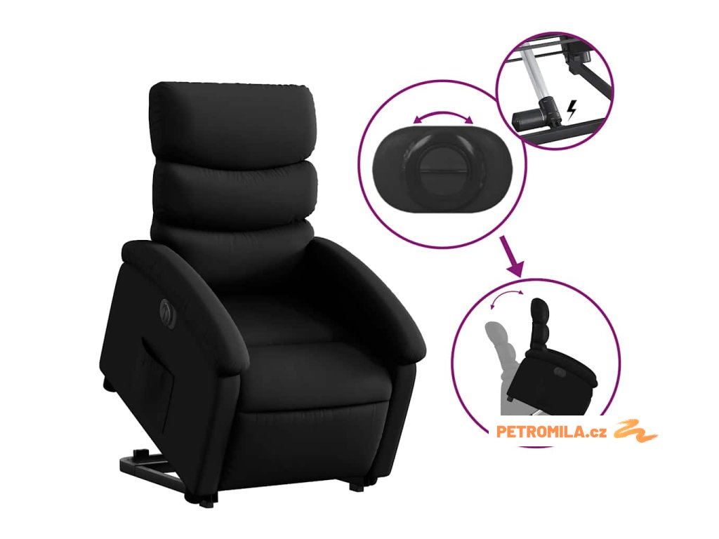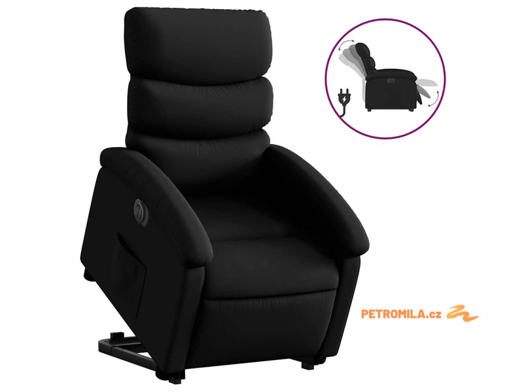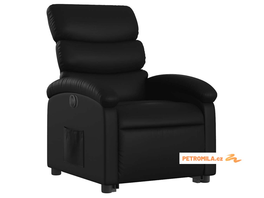 Elektrické zvedací polohovací křeslo černé umělá kůže