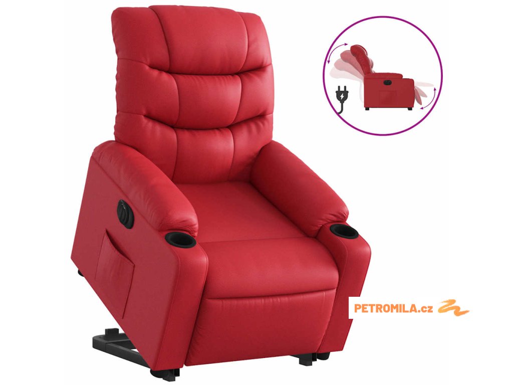 Elektrické zvedací polohovací křeslo červené umělá kůže