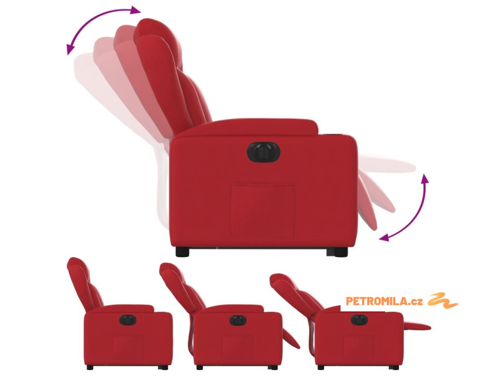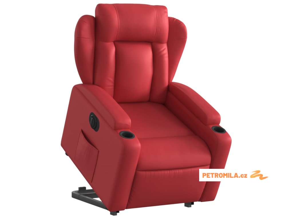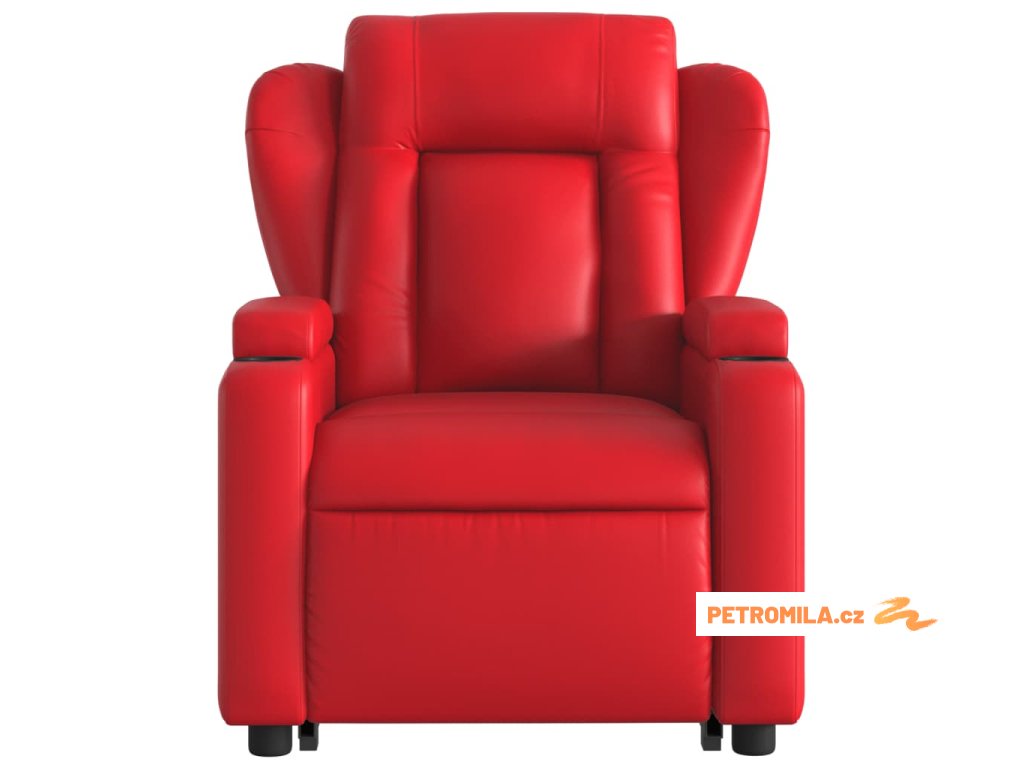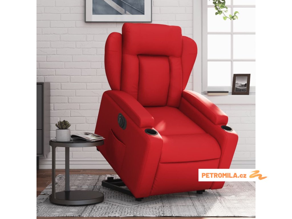 Elektrické zvedací polohovací křeslo červené umělá kůže