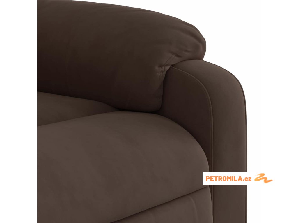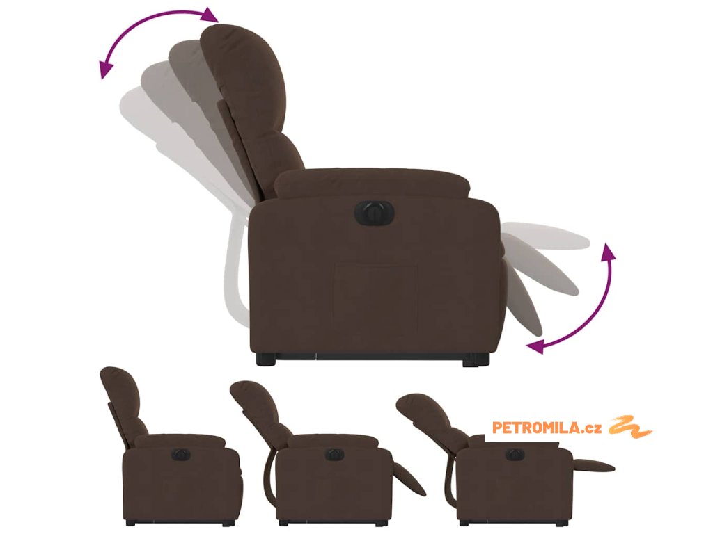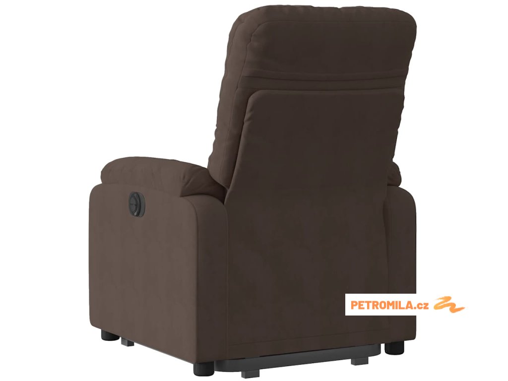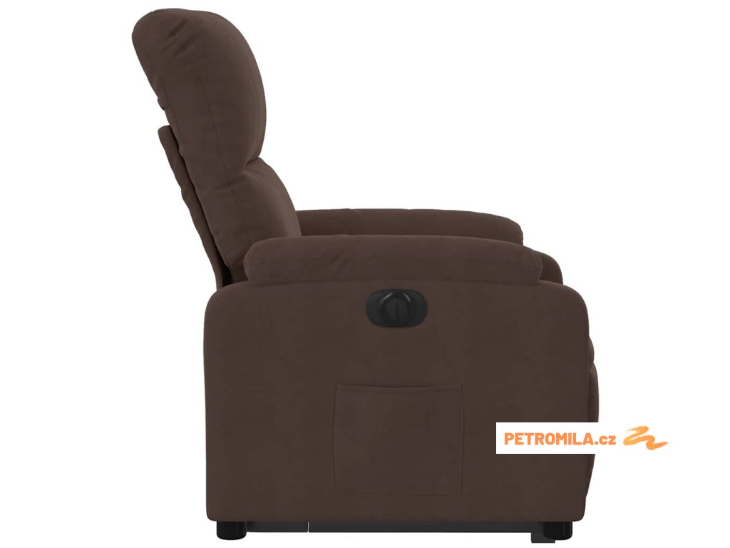 Elektrické zvedací polohovací křeslo hnědé látka z mikrovlákna