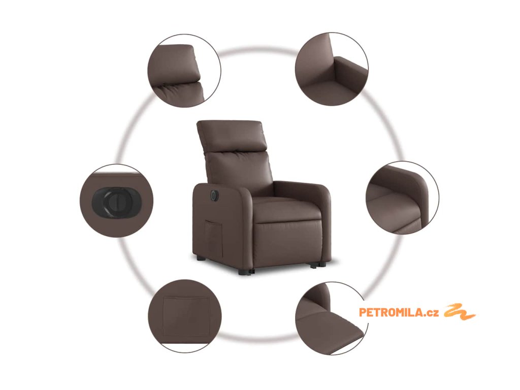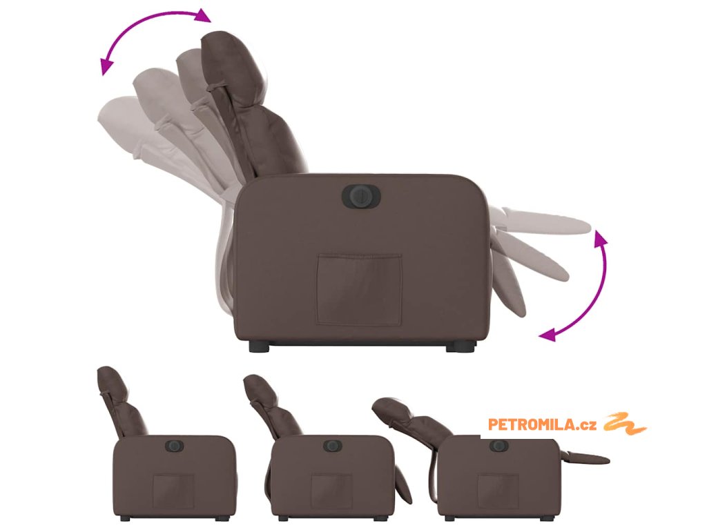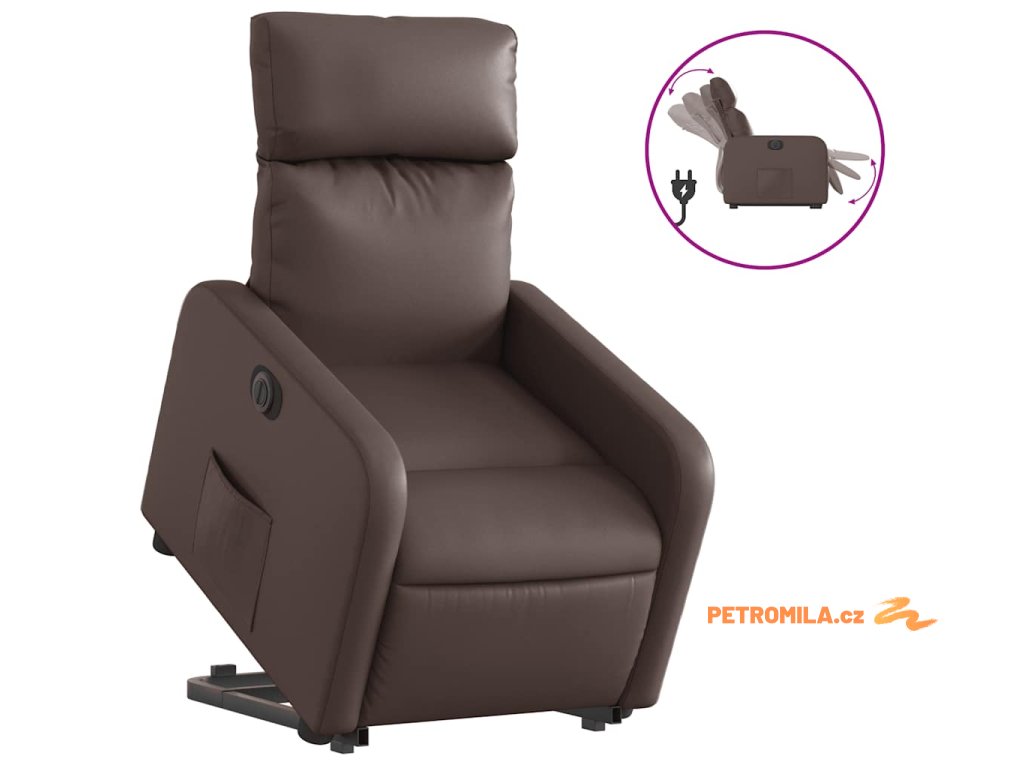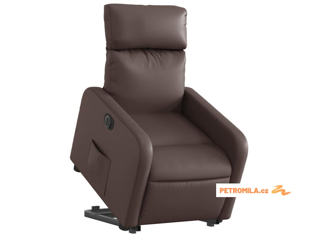 Elektrické zvedací polohovací křeslo hnědé umělá kůže