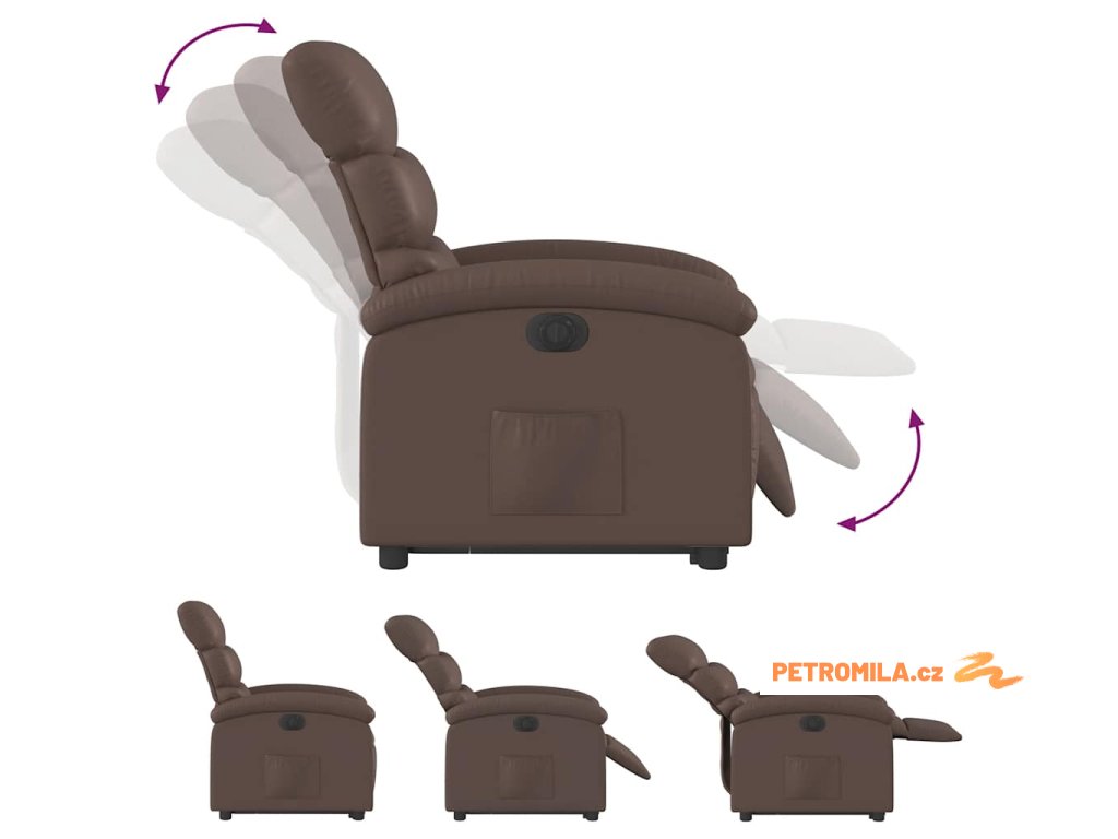 Elektrické zvedací polohovací křeslo hnědé umělá kůže