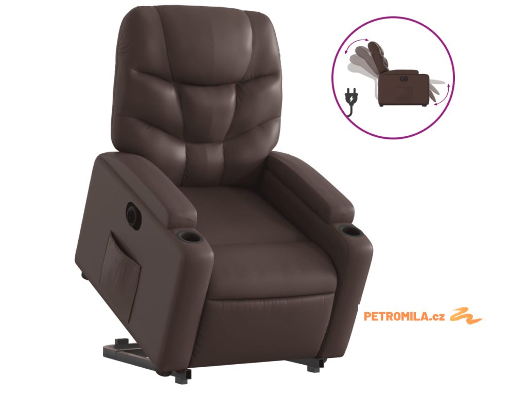 Elektrické zvedací polohovací křeslo hnědé umělá kůže