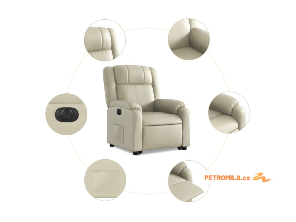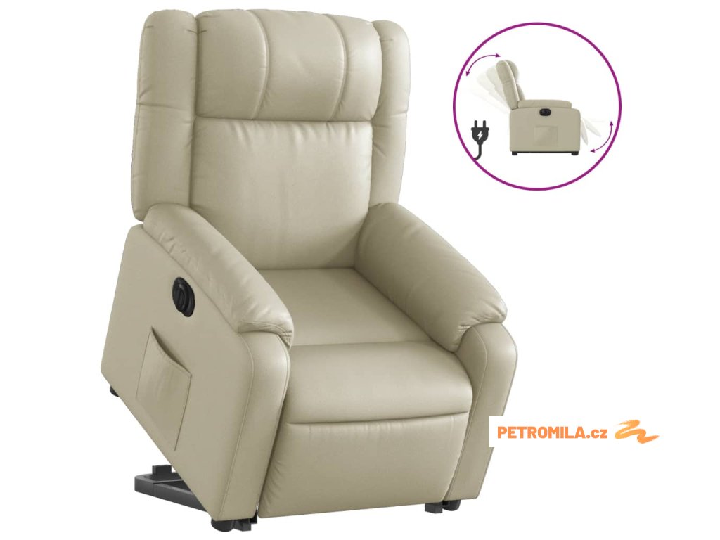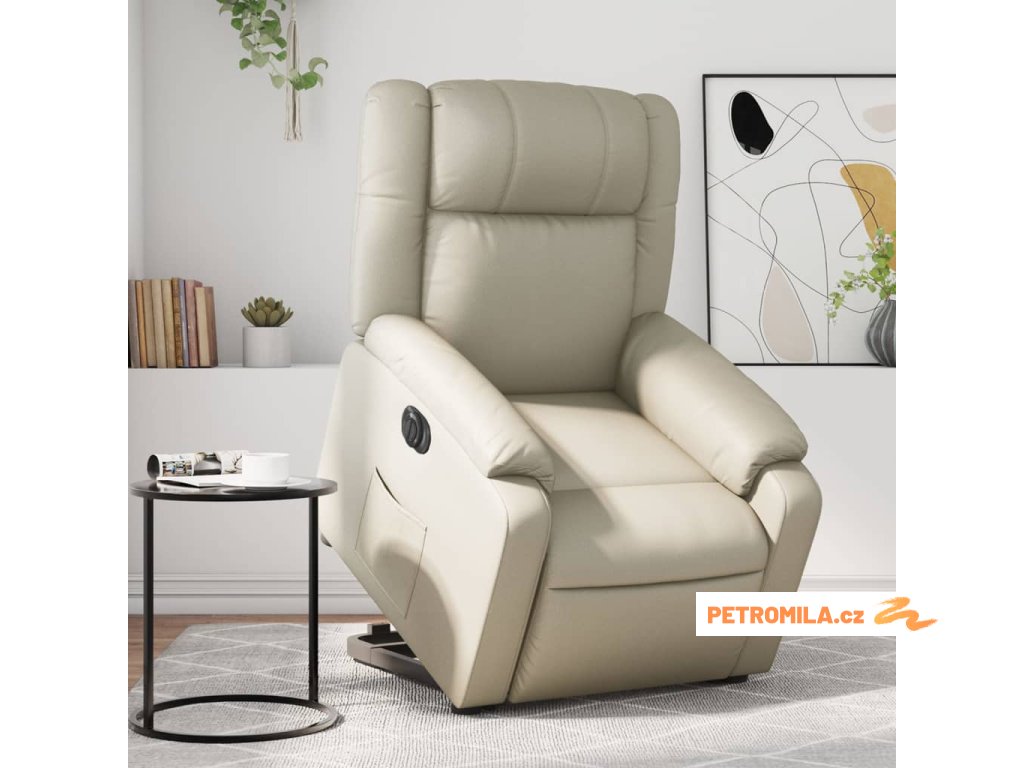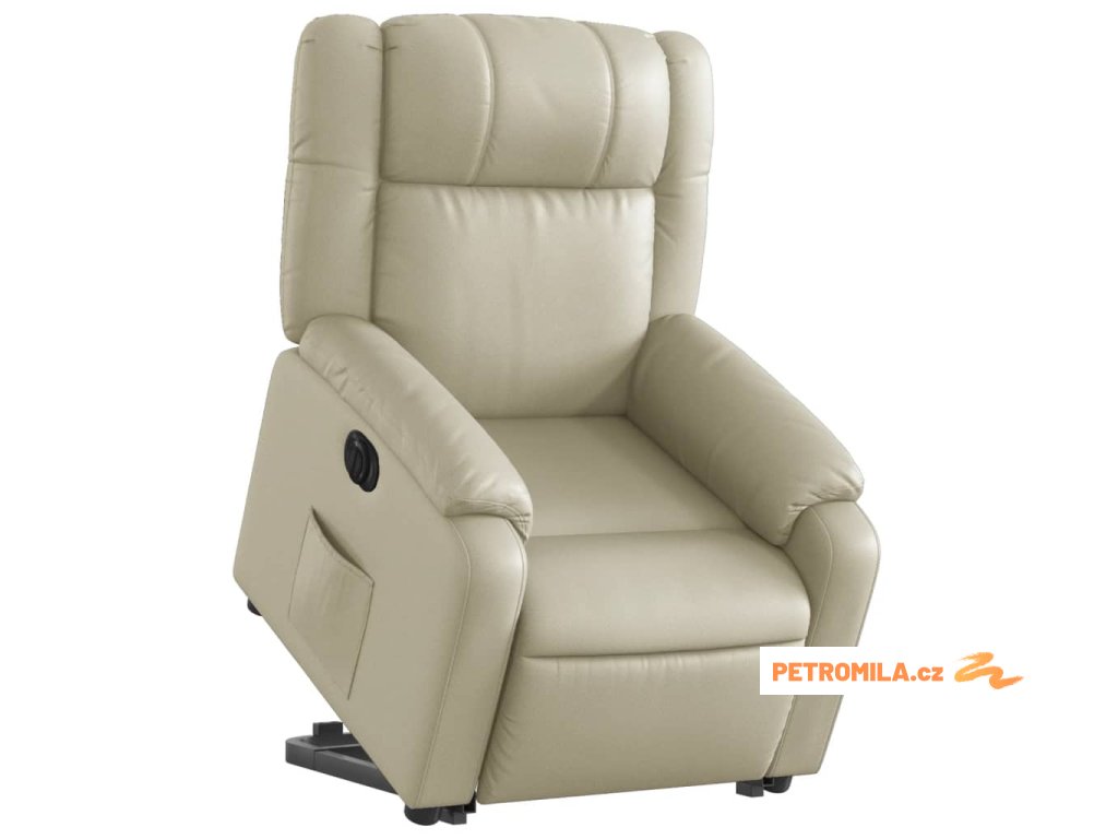 Elektrické zvedací polohovací křeslo krémové umělá kůže
