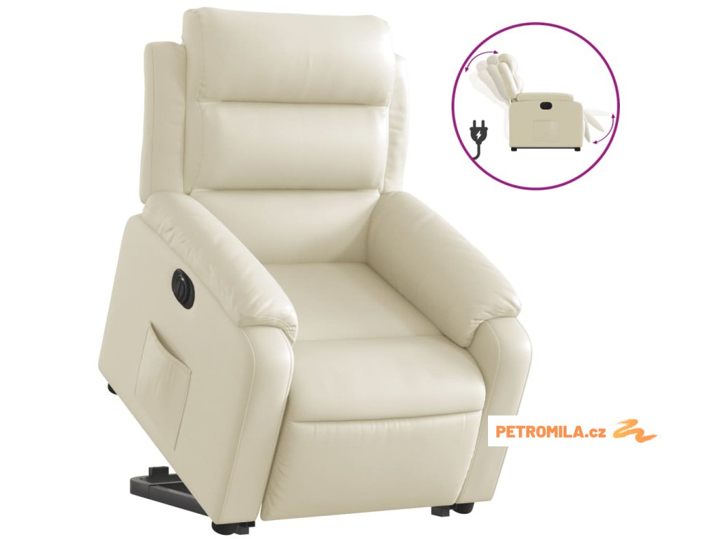 Elektrické zvedací polohovací křeslo krémové umělá kůže