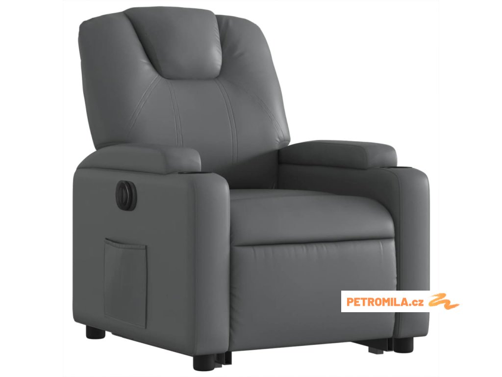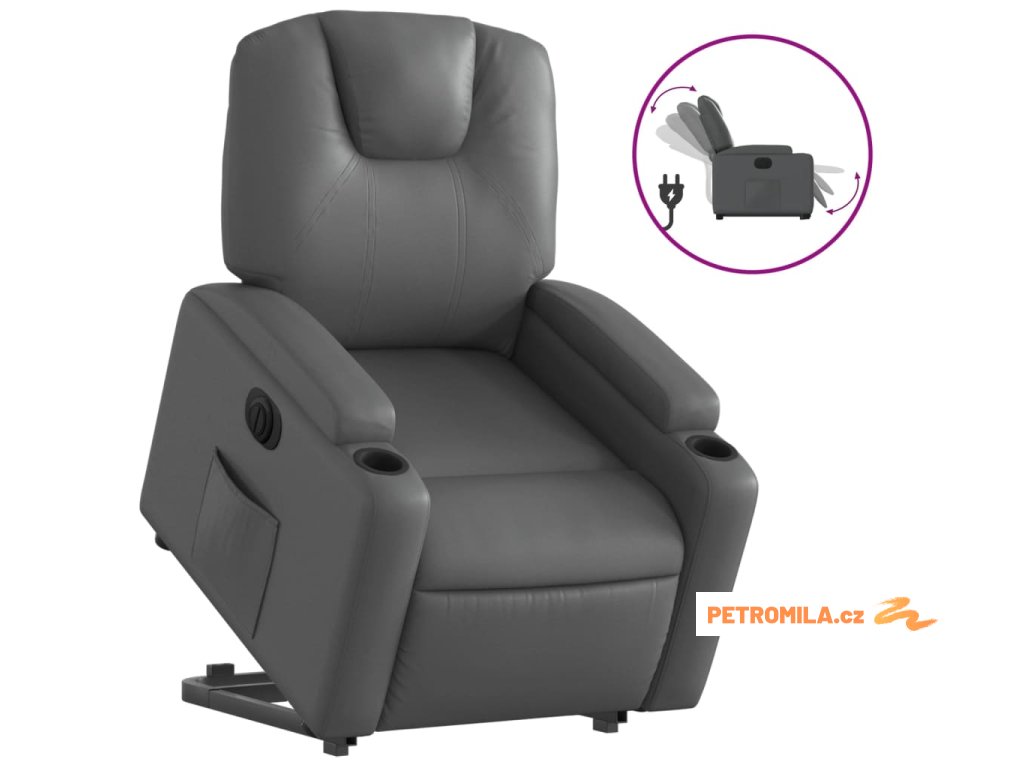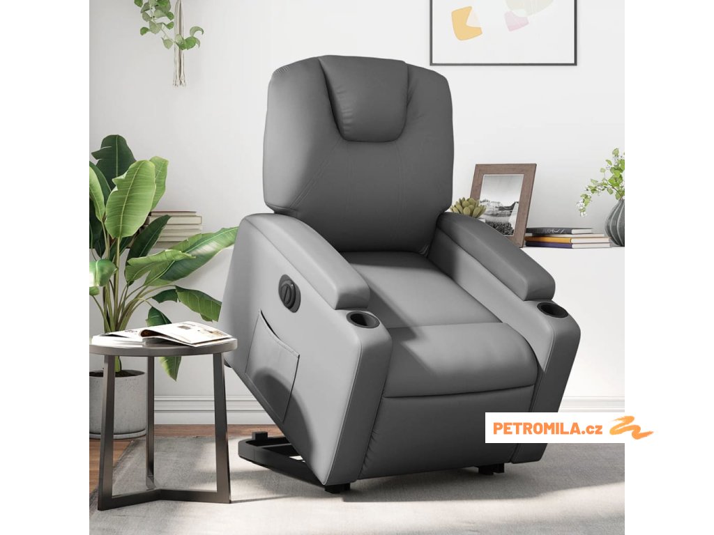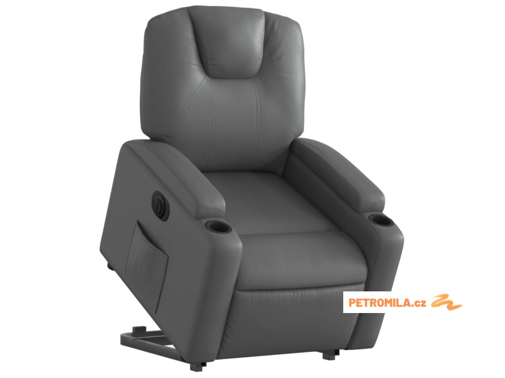 Elektrické zvedací polohovací křeslo šedé umělá kůže